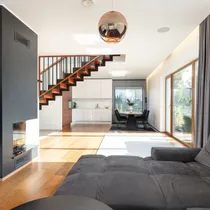 Kütte- ja soojaveevarustus põhineb lokaalsel õhk-vesi soojuspumbal, mille energia kantakse edasi mõlema korruse põrandaküttele. Küttearved on talviti u 300 eurot.