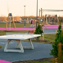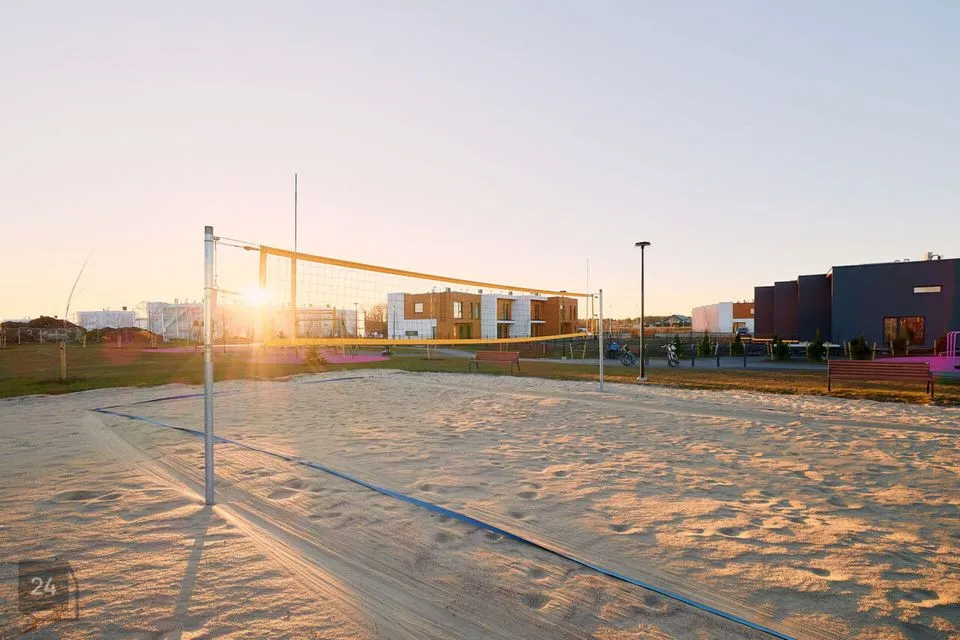 / Eraldi õuelinnak eri vanuses mänguväljakute, välijõusaali, jooga-ala, ning võrkpalliplatsiga