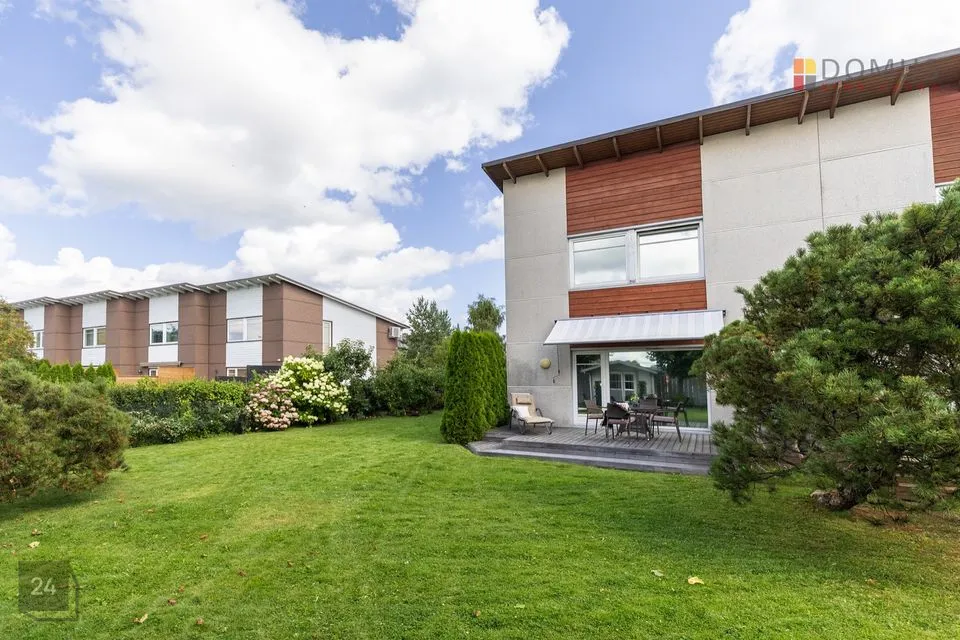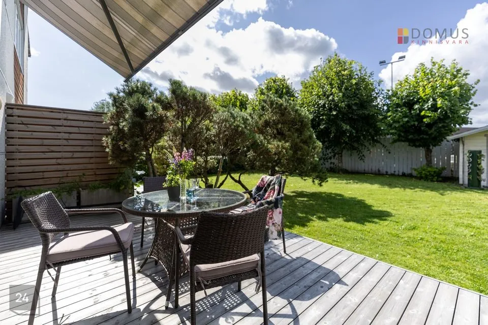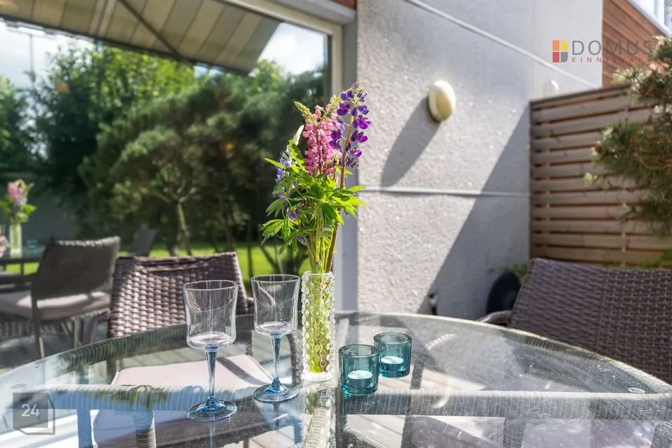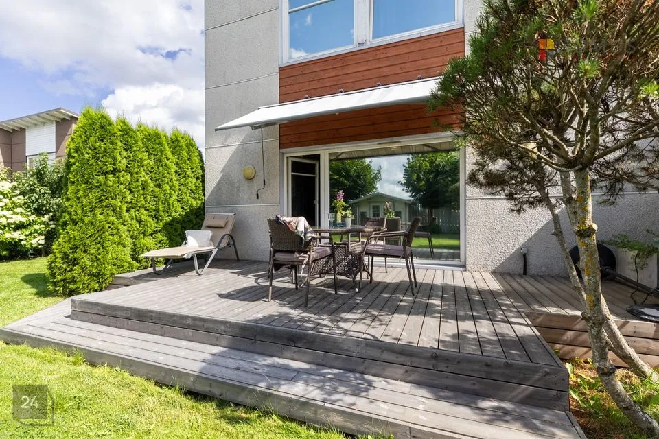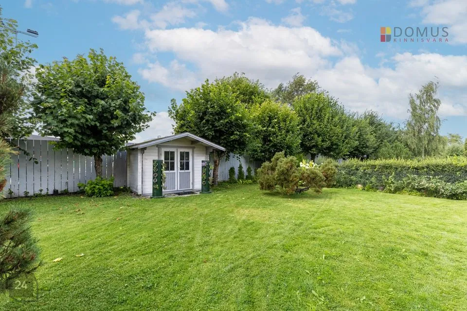 Maja küljele aia äärde on istutatud põõsaid ja viljapuid. Maja taga on veel eraldi kuur aiatarvikute jms. jaoks. Kastmisvee tarbeks on majast väljaspool olemas ka veekraan. Maja taga asuva terrassi kohale saab päikeselise ilma ja vihma korral avada markiisi.