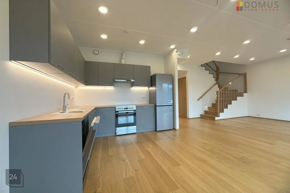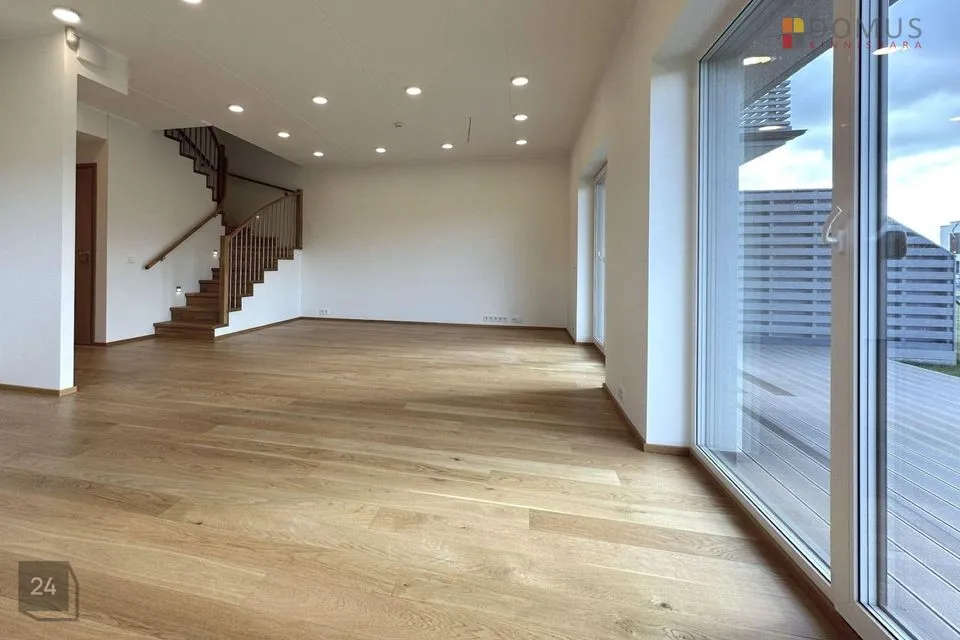 Elutoast pääseb avarale 24 m² terrassile, kust avaneb vaade lõunapoolsesse privaatsele hoovile (ca 130 m²). Lisaks eraldi sissepääsuga tehnoruum/panipaik.