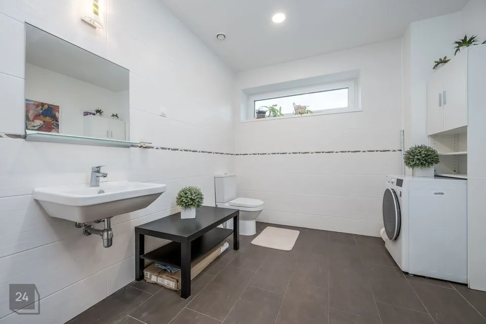 Ka teisel korrusel ei puudu vannituba ja wc. Lisaks on seal olemas vann ja väga mahukas vannituba, kuhu saab paigaldada pesumasina, kuivati ja triikimislaua.