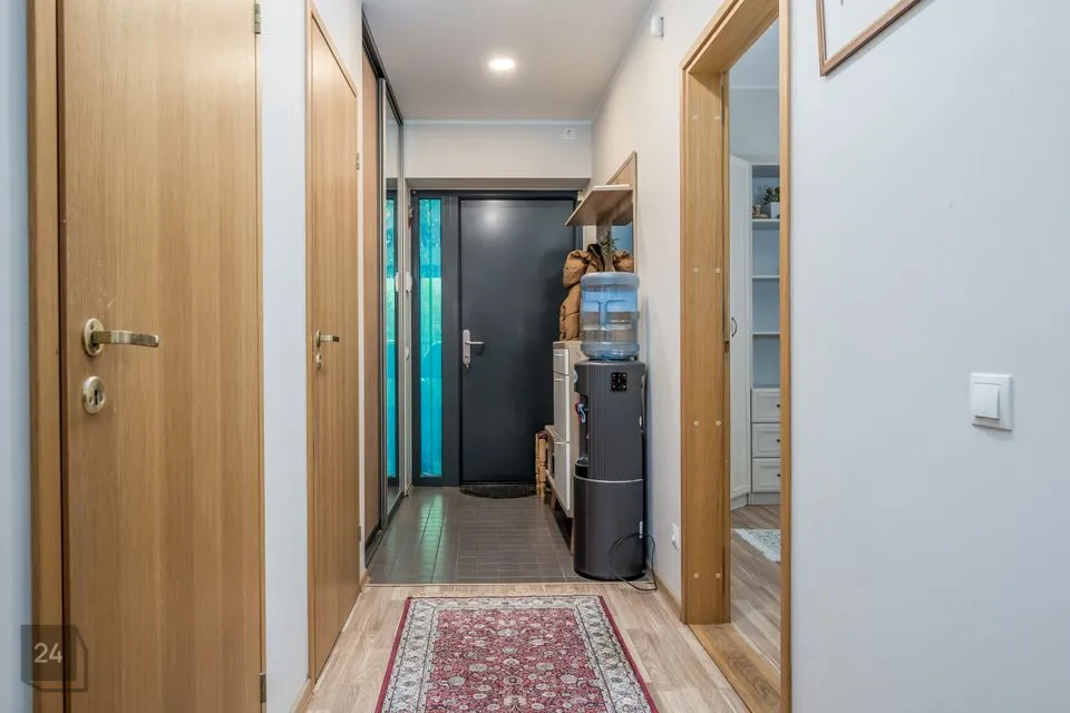 Astudest välisuksest sisse, astud sa kohe üpriski avarasse esikusse, kuhu on hetkel paigaldatud mahukas garderoobkapp. Vasakut kätt jääb kohe üks tubadest, mis on ideaalne näiteks kodukontoriks. Paremat kätt asub majaosa üks tualettruumidest ja lisaks eraldi ruumina asub elektrikerisega saun ja dušinurk.