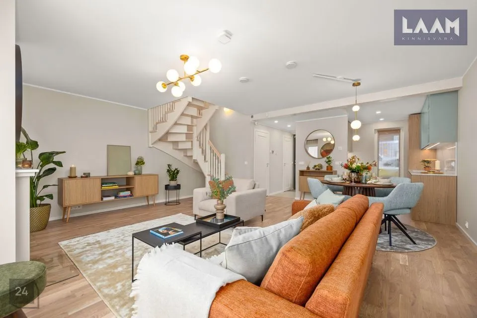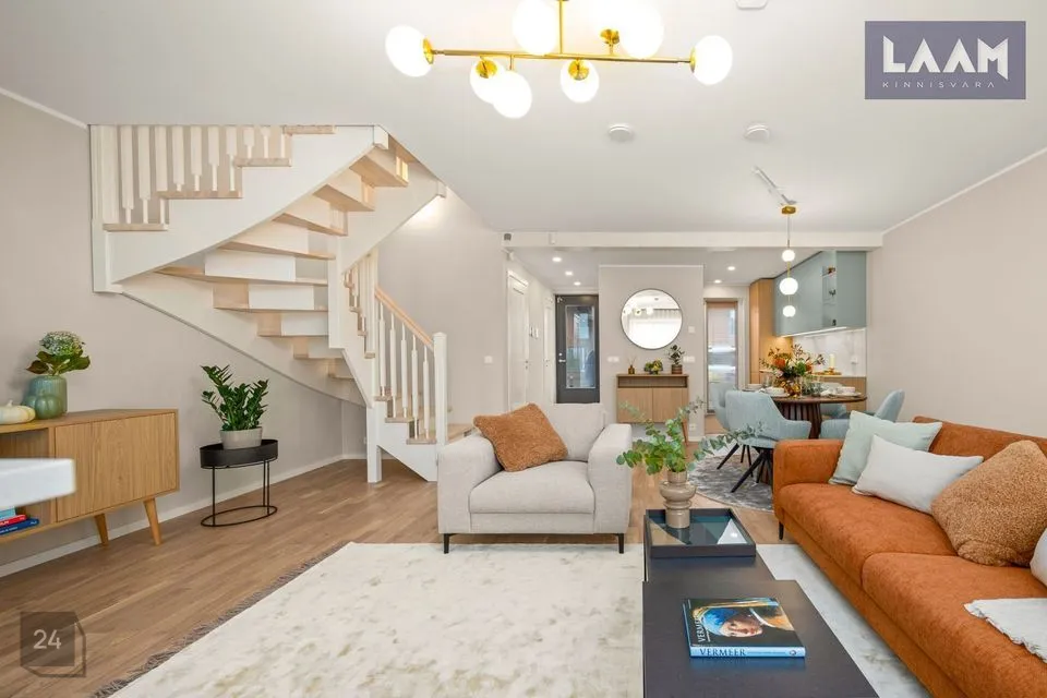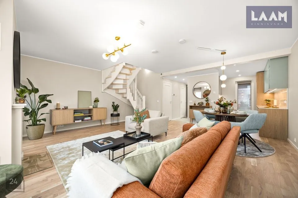 Ridaelamu kroonjuveeliks on esimesel korrusel asuv avar ja valgusküllane elutuba suurusega 36 m2. Privaatse nurgaga köögiala ( 5,9 m2) on ühendatud elutoaga.