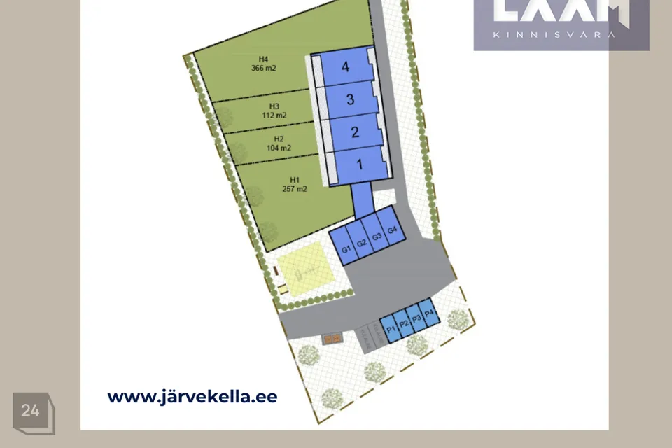 •Parkimine: Iga boksi juurde kuulub suur garaaž ja kindel parkimiskoht parklas. Parklas on ka lisaparkimiskohad külalistele.