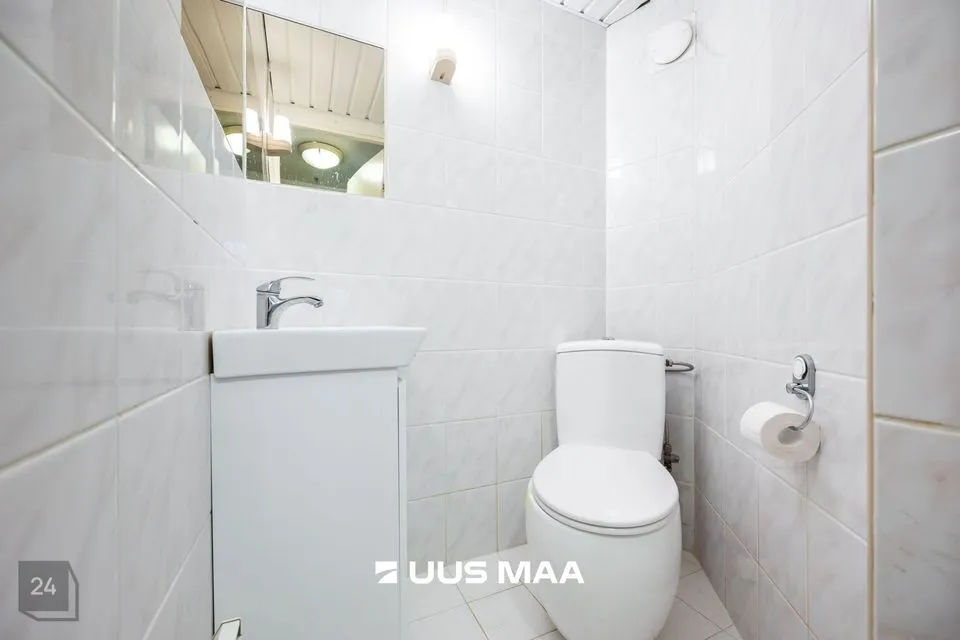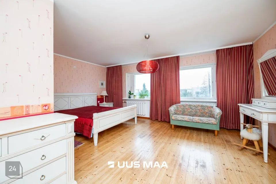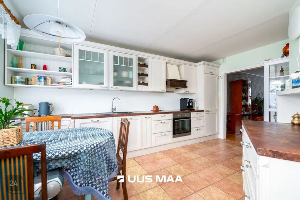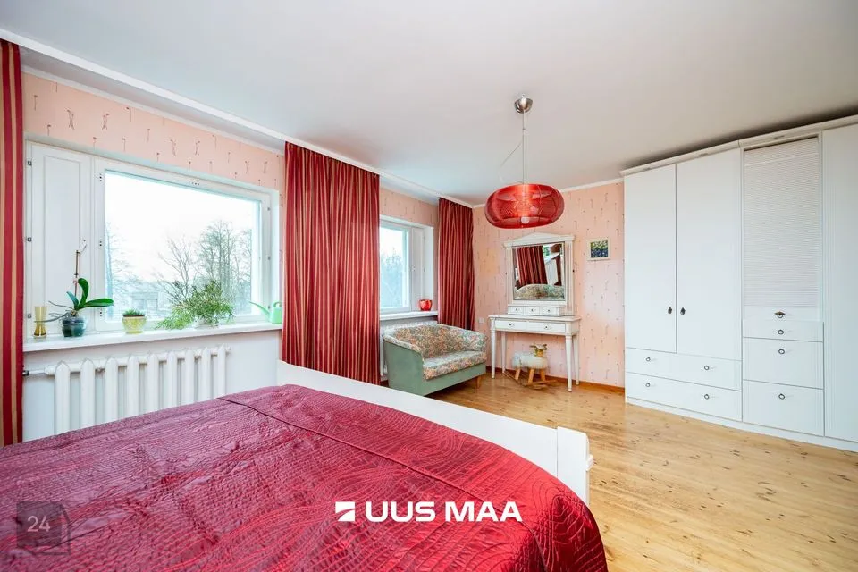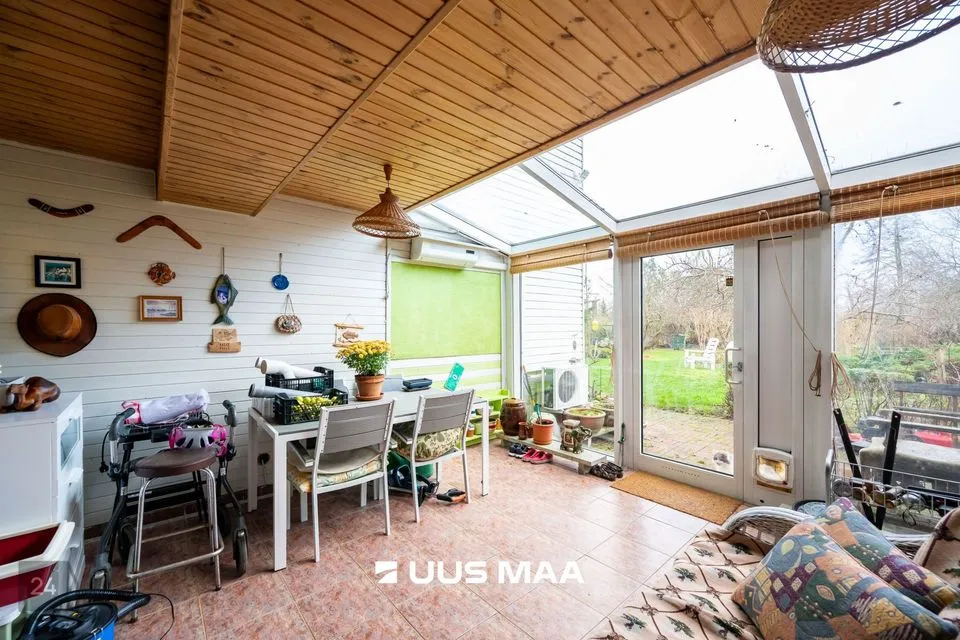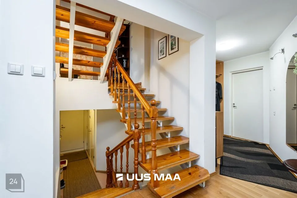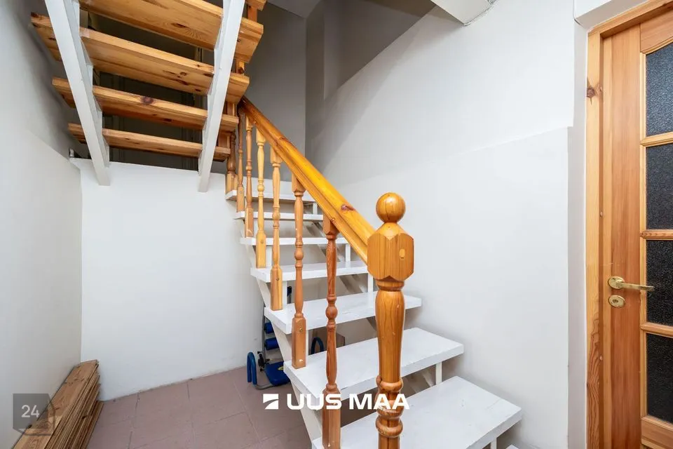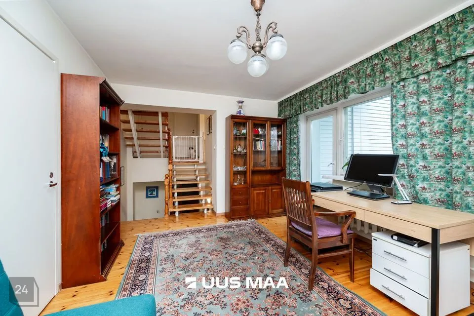 Majaosa, mille ruumiplaneering on lahendatud poolkorruste kaupa on osaliselt renoveeritud 2023.a. Sissepääsukorrusel paikneb avar elutuba, köök ja esik. Poolkorrusel asub rõduga kontoriruum ning vannitaga master-bedroom. Ülemisel korrusel on kolm magamistuba ja avar duširuum koos wc-ga.