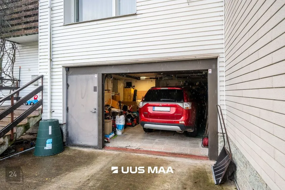 25,2 m² soe garaaž, kuhu mahuvad nii maastur kui ka mootorratas. Garaažiuks avaneb mugavalt puldist. Lisaks on maja ees hooldatud hooviala, kus on parkimiskohti mitmele autole.
