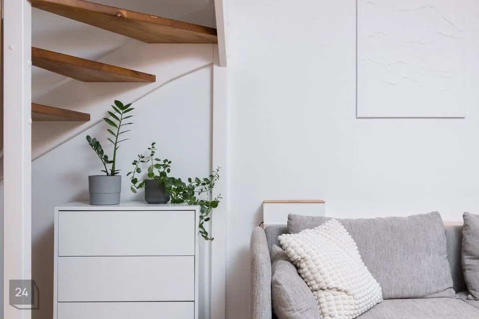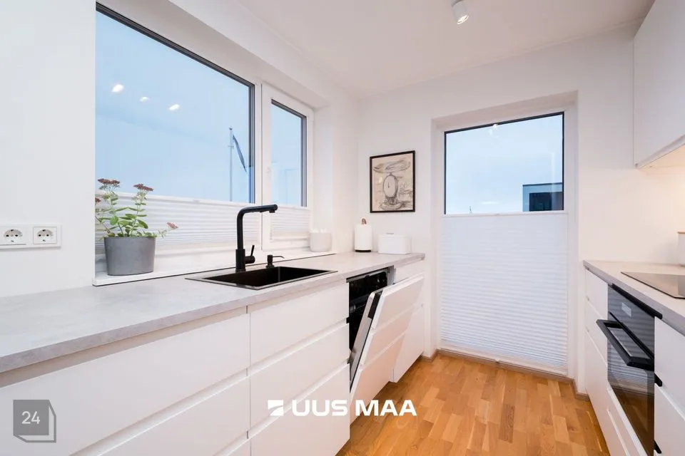 Avarad aknad, avatud ruumilahendus ja heledad toonid tagavad ridaelamu boksis küllusliku päevavalguse.