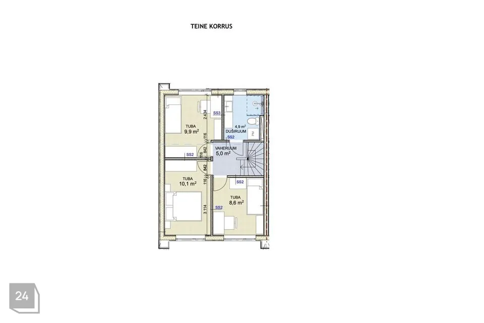 Teisel korrusel on 3 magamistuba ning duširuum koos wc-ga.