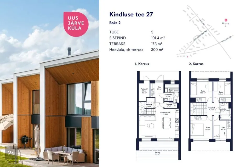 Uus-Järveküla perekeskne elurajoon ühendab looduse ja linnaelu mugavused. Need on kodud peredele, kes soovivad elada looduse keskel, linna vahetus läheduses ning hindavad suuremat privaatsust ja looduslähedust, kui seda pakub kortermaja. Uus-Järvekülas on poed, koolid ja lasteaed mugavas läheduses ning linnaga korralik ühendus nii ühistranspordi kui autoga.
