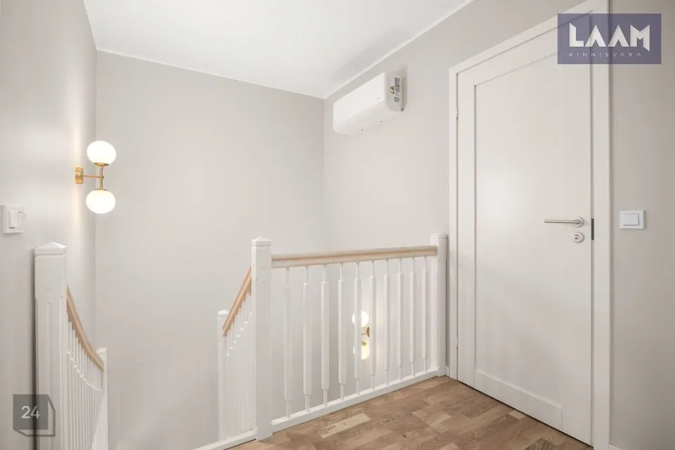 Esimesel korrusel asuvad ka esik, majapidamisruum ning WC/duširuum. Teisel korrusel asuvad 3 magamistuba ning saunaga duširuum.