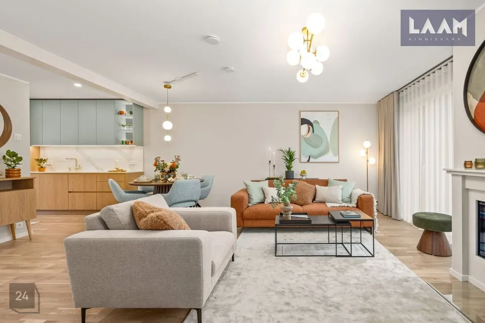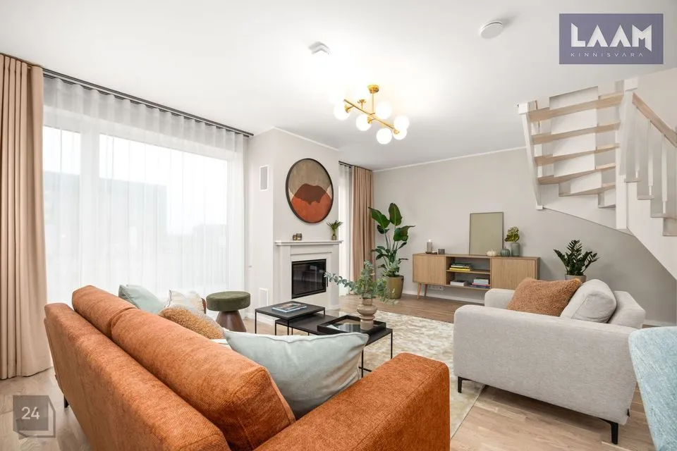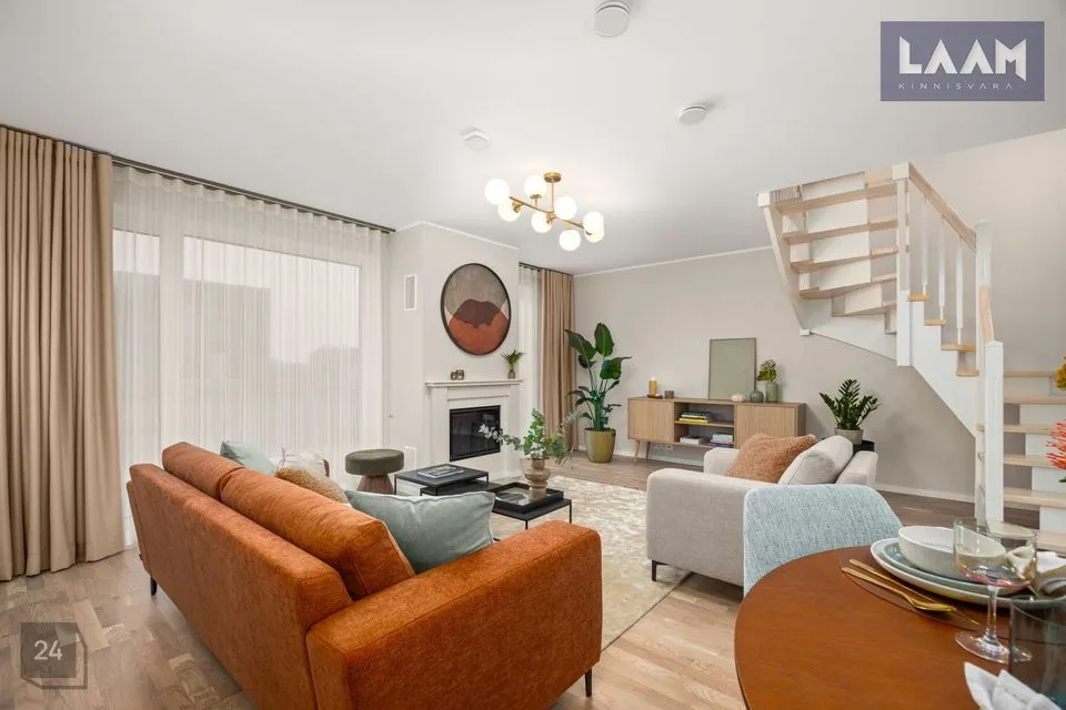 Ridaelamu kroonjuveeliks on esimesel korrusel asuv avar ja valgusküllane elutuba suurusega 36 m2. Privaatse nurgaga köögiala ( 5,9 m2) on ühendatud elutoaga.