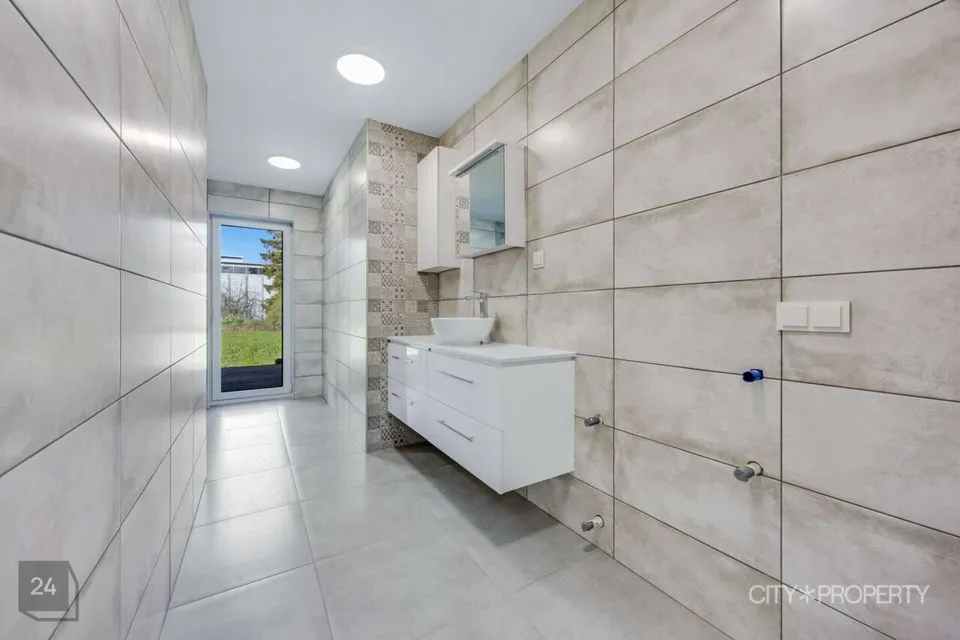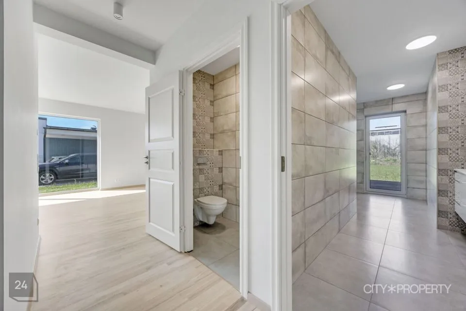 Majja sisenedes on koridor/esik, kuhu paigutada üleriided ja jalanõud. Järgmisena on ruumikas köök/elutuba. Elutoast pääs terrassile kus mõnus soojadel suveõhtutel grillida. Majas on 2 wc-d, üks neist eraldi ja teine asub vannitoas. Lisaks on mõnus suur majapidamisruum/duširuum kus asub ka saun. Saunast on otse pääs terrassile. Kolm maast laeni akendega avarat magamistuba, milles on olemas ka sisseehitatud garderoobkapp.