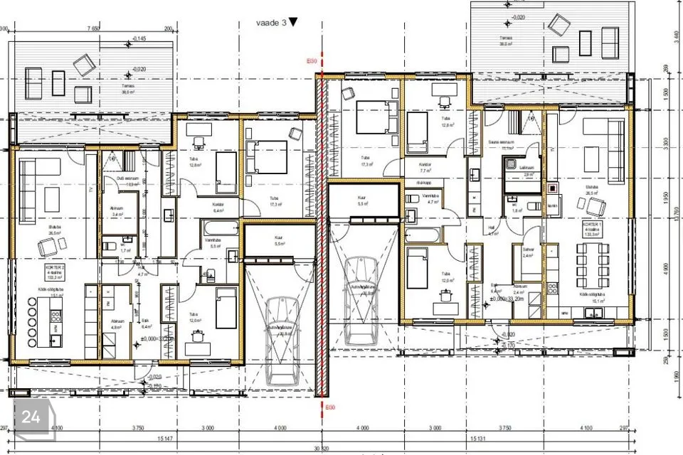 Müüa suurepärase planeeringuga, 4-toaline majaosa Saue vallas, Vanamõisas. Rahulikus piirkonnas asuv majaosa on valminud 2024 aastal. Maja üldpinnaks on 133,3 m2. Tegemist on kivimajaga, mis on üle krohvitud. Katust katab rullmaterjal ning majale paigaldatud pakettaknad.