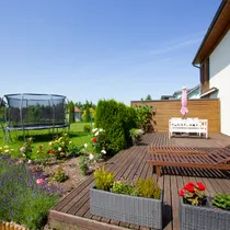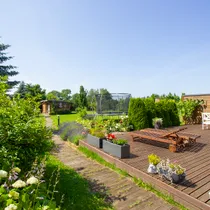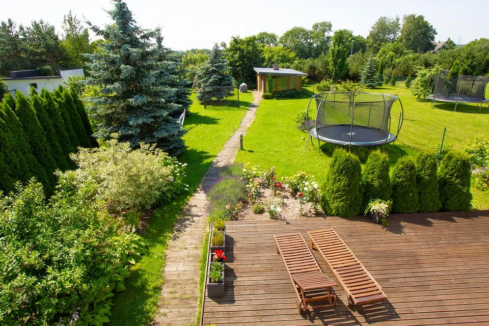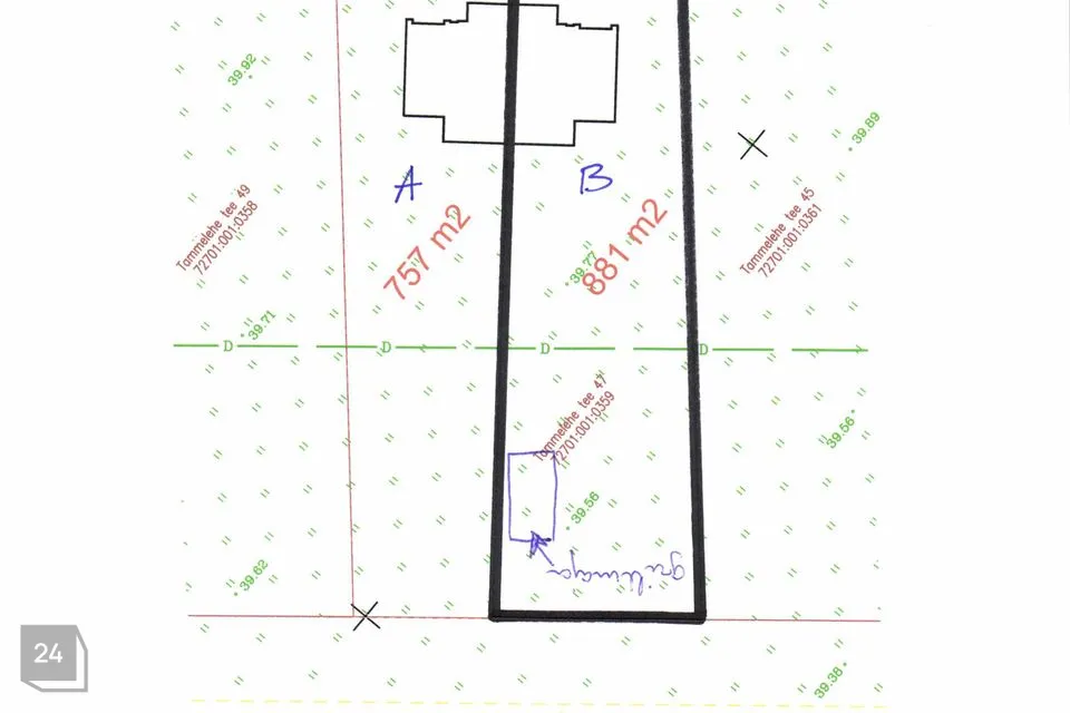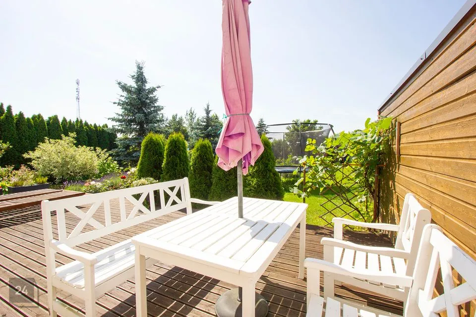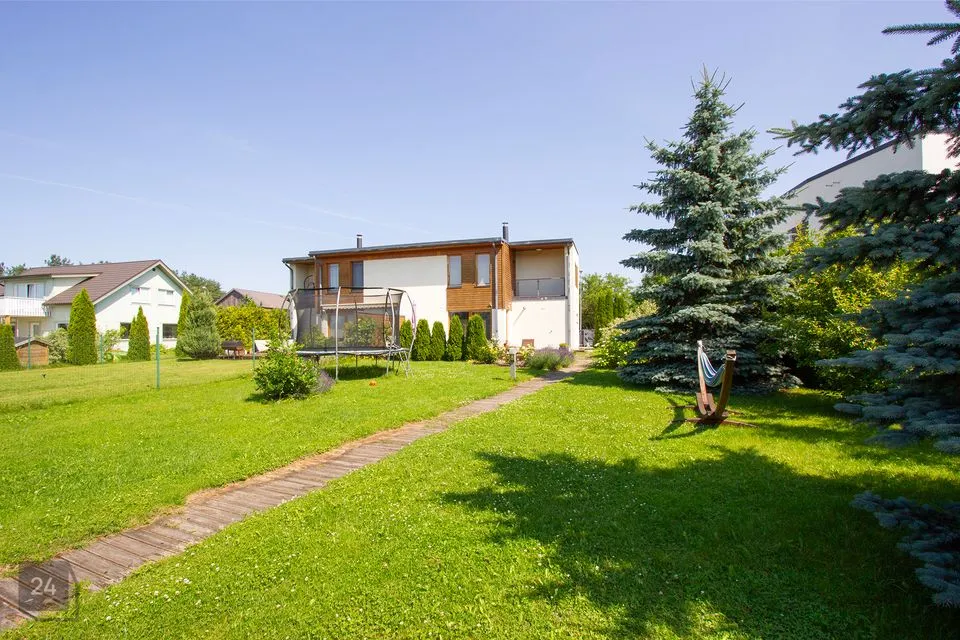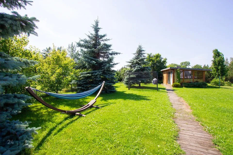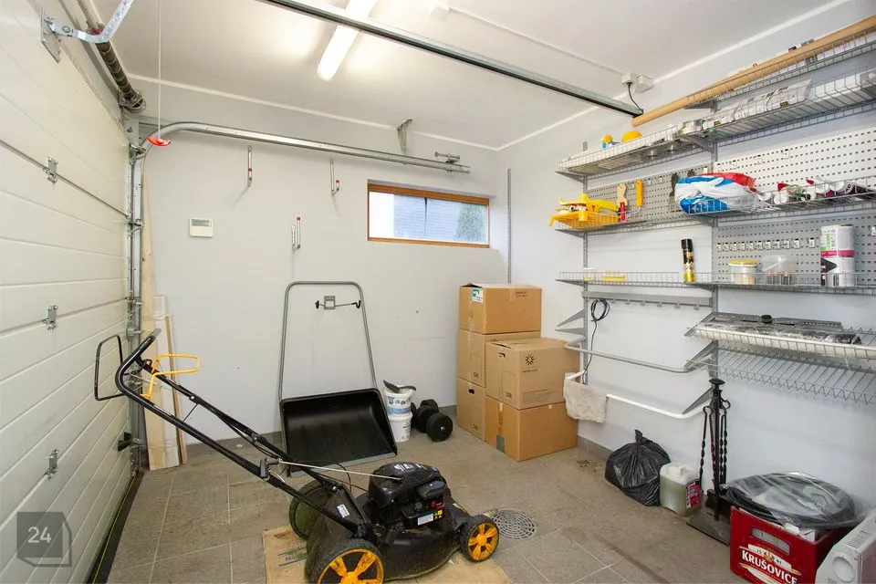Kinnistu ümber ja hoovialade vahel on piirdeaed. Maja ees on betoonkividest parkimisala. Autovärav on avatav puldiga ning telefoniga. Maja ees on ka elektriauto laadija. Notariaalse kasutuskorraga on määratud kummagi majaosa kasutuses olevad alad. Müüdava kodu juurde kuulub suurem, koos majaaluse pinnaga 881 m2 suurune ala.