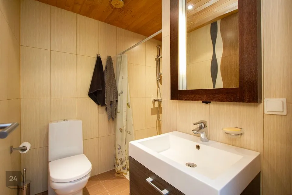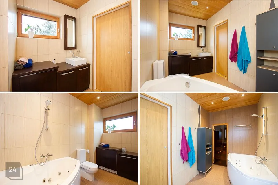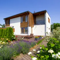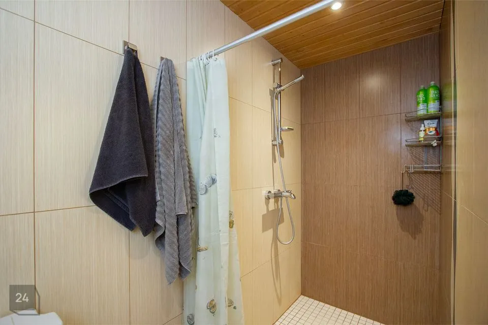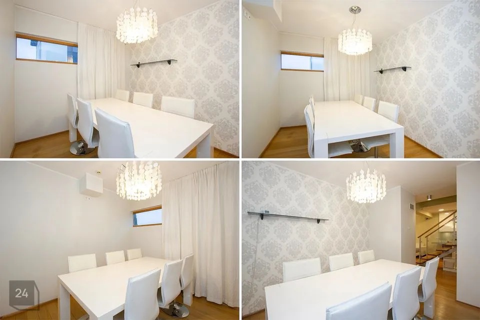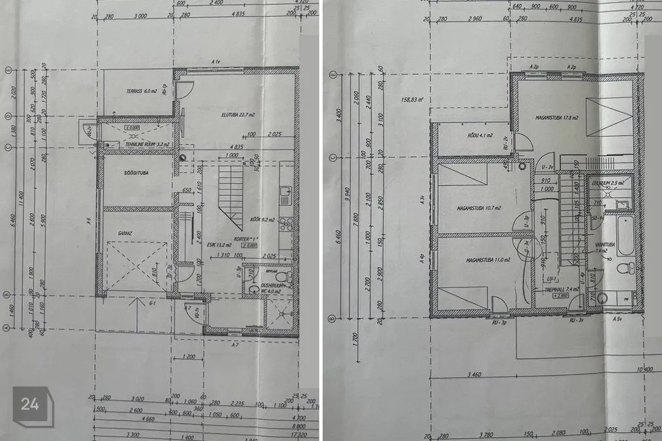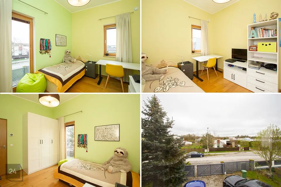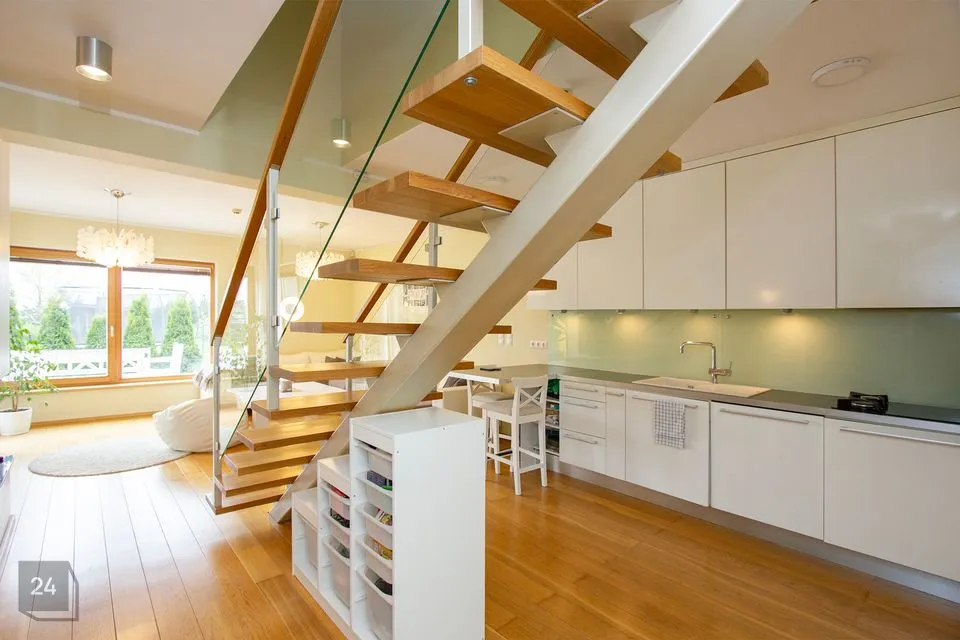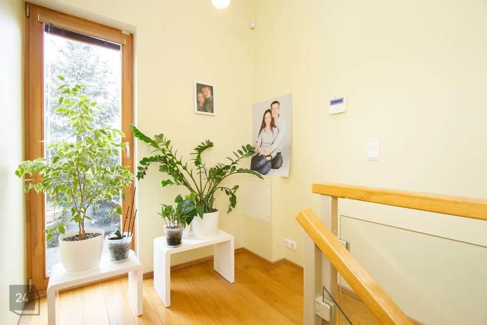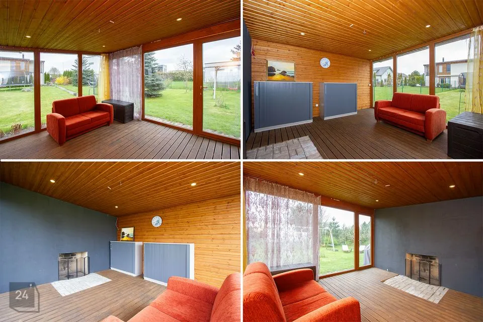 Hoone on mahult jagatud kaheks, kuid tänu korralikele vaheseintele eluruumides naabreid praktiliselt kuulda pole. Hoone on paigutatud krundile selliselt, et jääks võimalikult palju haljasala pinda ning puitterrass jääb majast sisehoovi ning päikese poole. Fassaadis on kasutatud beeži krohvi ning pruuni puitlaudist. Majal on puitraamidel pakettaknad. Põrandatel on puitparkett. Niisked ruumid ja esik on plaaditud. Hoovi tagaservas asuv kõrvalhoone koosneb kahest osast. Lisaks fotodel kajastatud kaminaga ruumile on eraldi sissepääsuga ka puukuur.