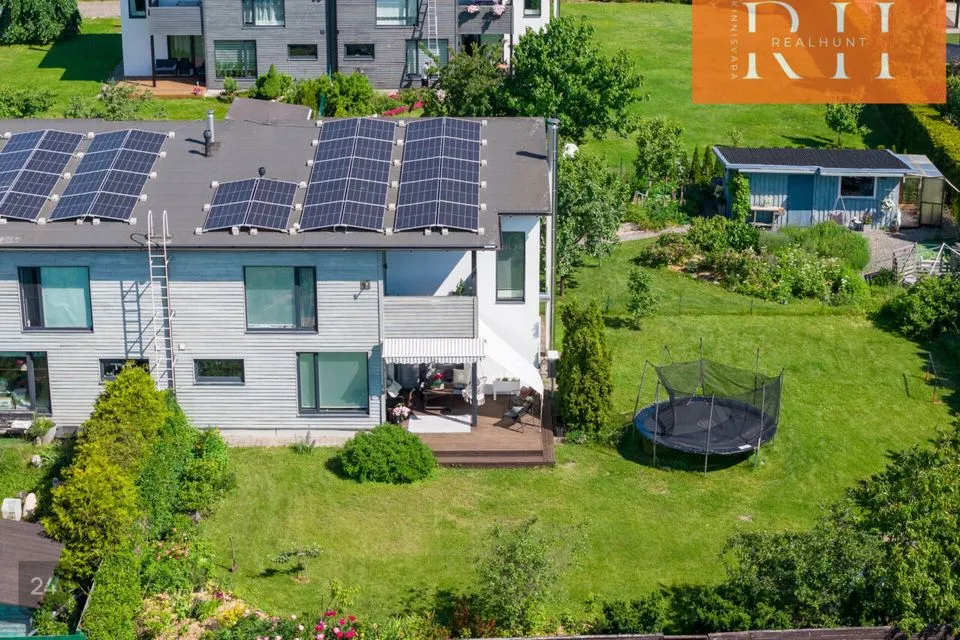 Majaosa esimesel korrusel kamin. Majale paigaldatud katusele päikesepaneelid 8 kw (kasutusele võetud 2023 aastal).