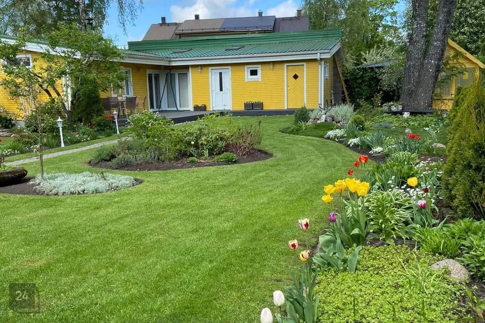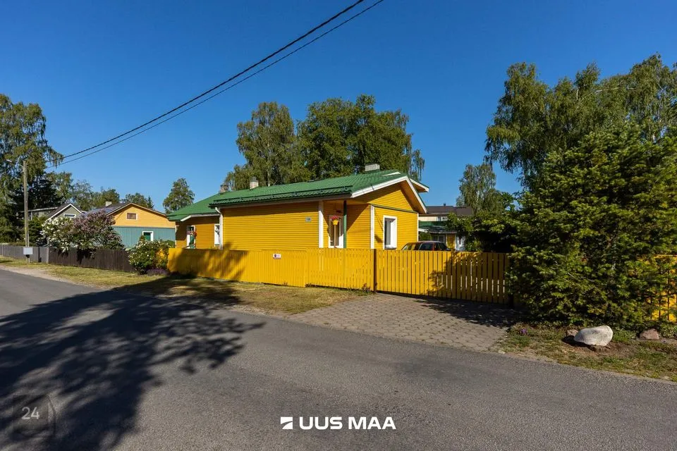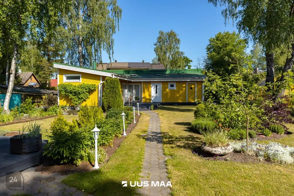 Ilus erkkollane elumaja on tänaval juba kaugelt näha, see särab nagu päike keset metsa.