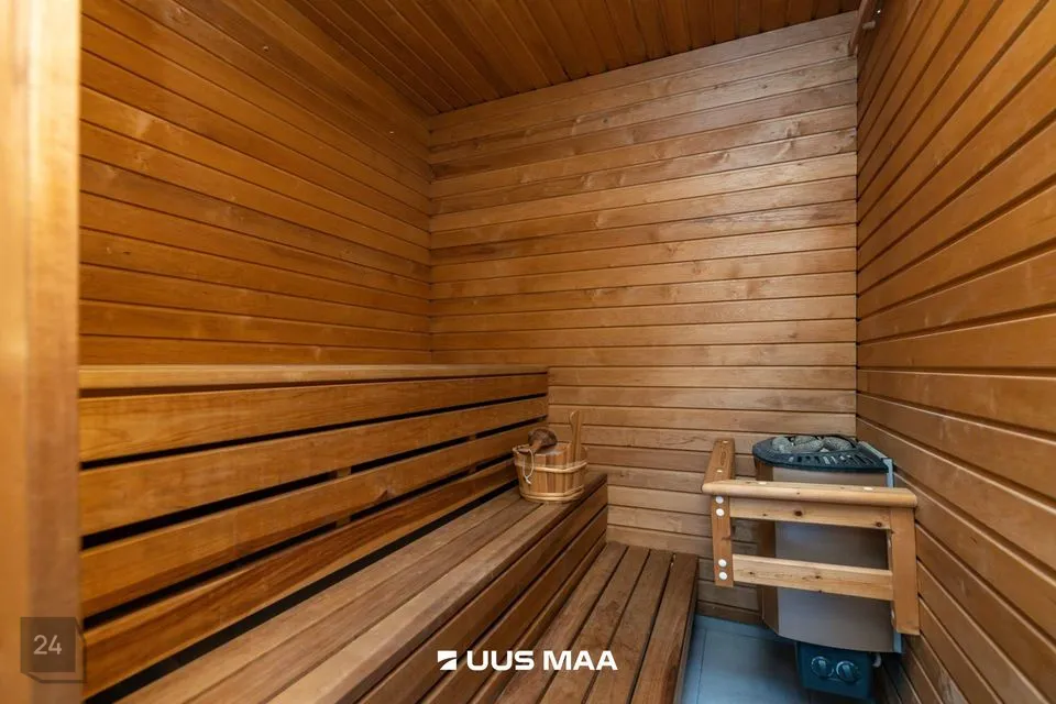 Hoovimaja on kompaktse planeeringuga nagu kahetoaline korter koos suure terrassi, sauna ja vannitoaga. Majja sisenedes astud esmalt väikesesse esikusse, kus paremat kätt jääb garderoob ning otsesuunas vannituba ja elektrikerisega saun.