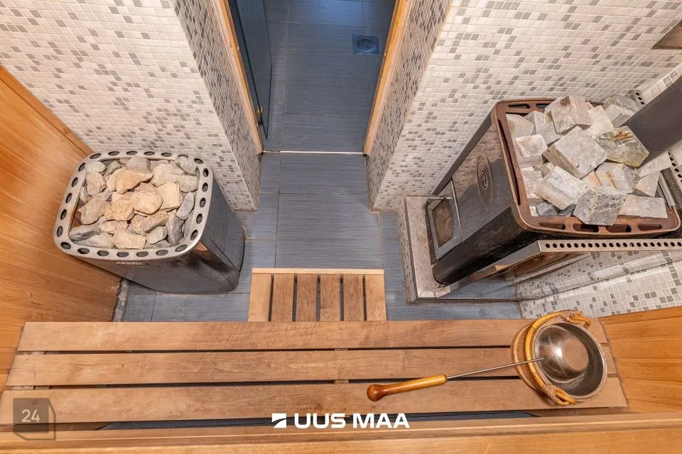 - sauna leiliruumi ( 3.1 m² ) kütab kuumaks Harvia elektrikeris või Kastori puukeris.