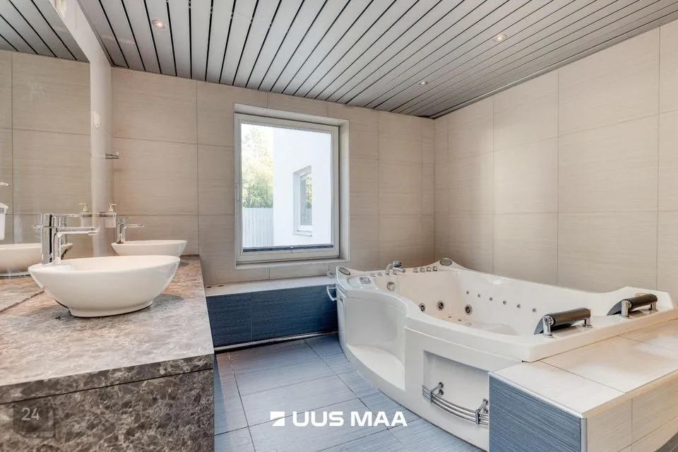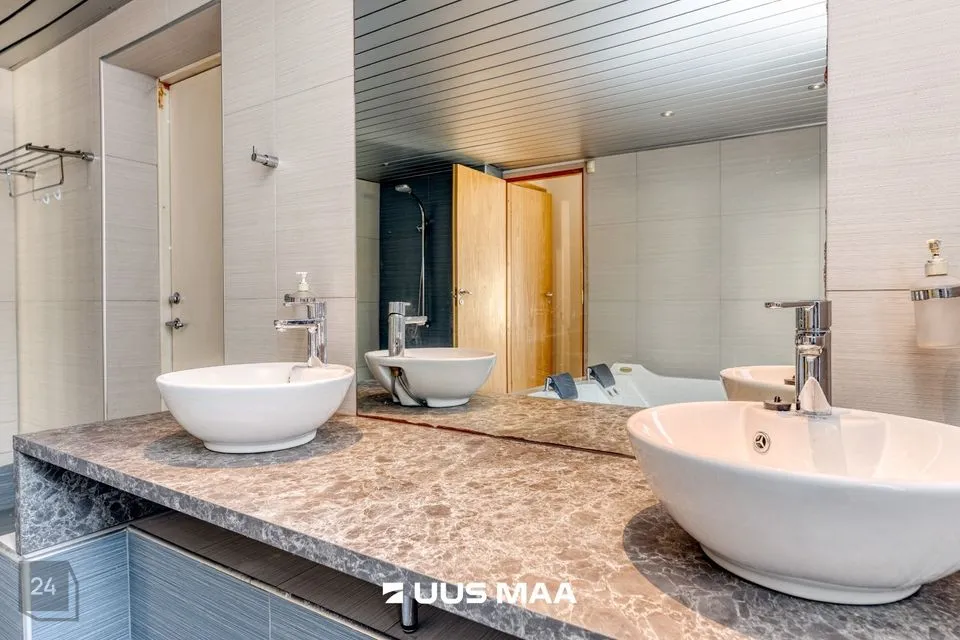 - suure mullivanni, kahe valamu ja dushiga vannituba ( 13.8 m²) . Vannitoast väljapääs ka maja taha jäävale terrassile.