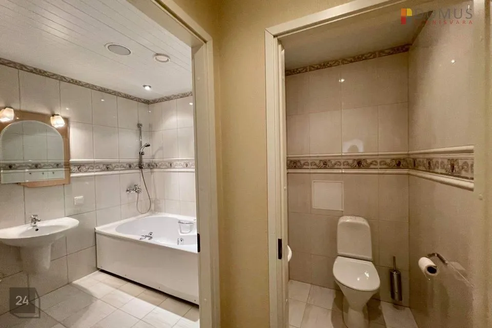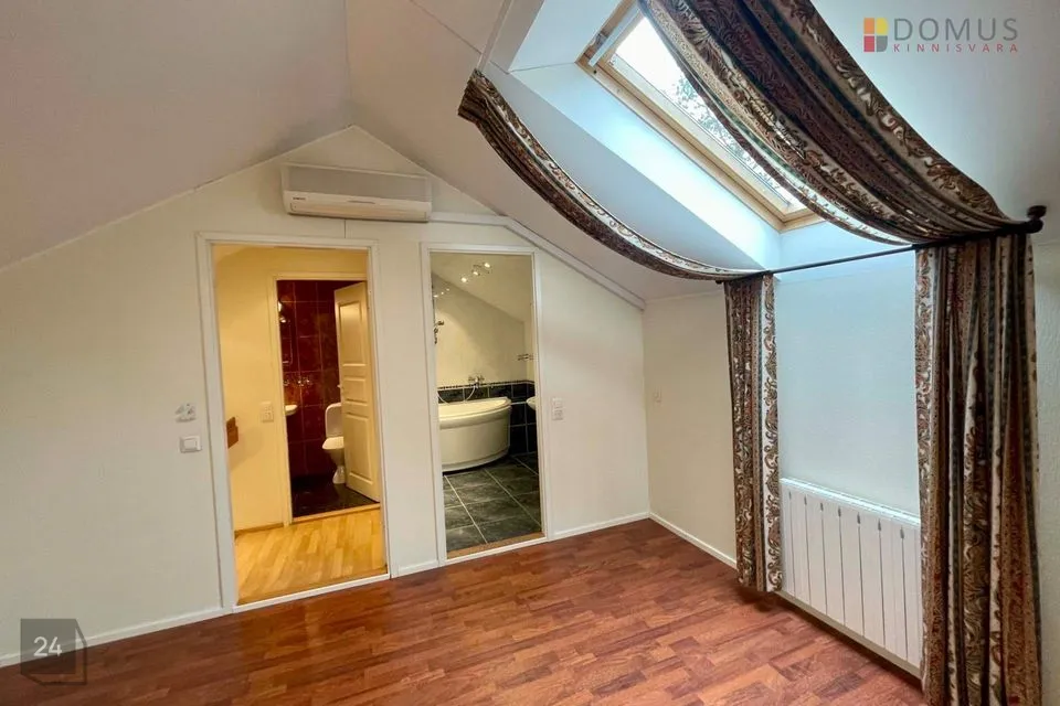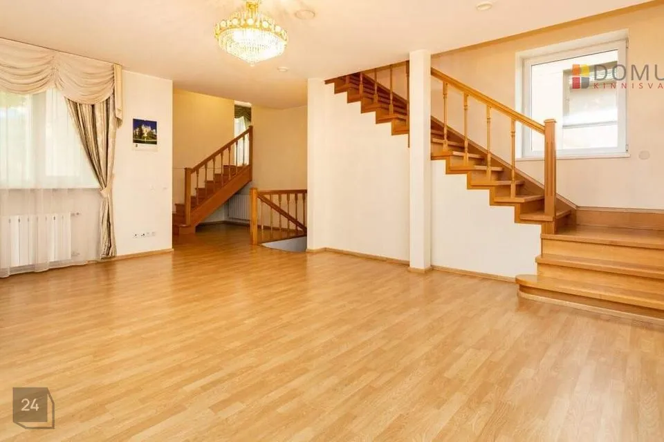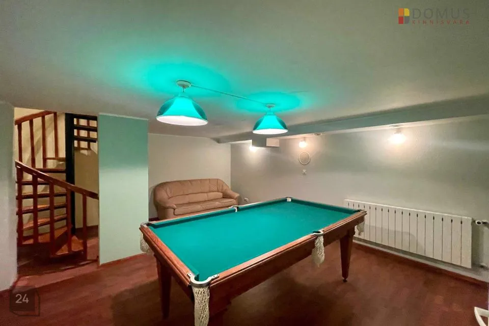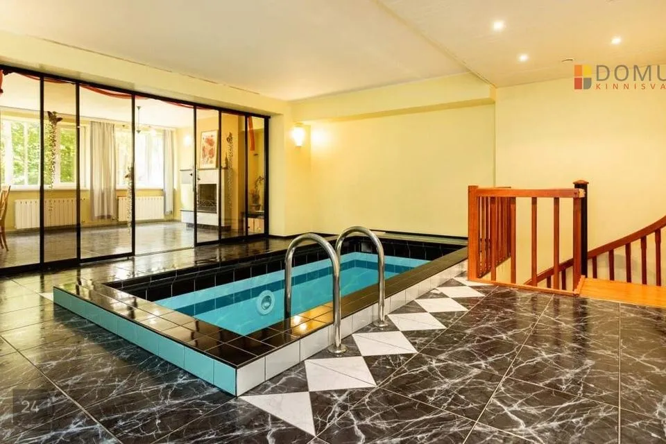 Suuremasse ossa viib avar välitrepp. Maja esimesel korrusel asuvad suur esik (põrand plaaditud), elutuba ja spa osa (lainesüsteemiga bassein, saun, dušš ja tualett). Maja soklikorrusel asuvad piljardisaal, külmaruum (12 m²) ja tehnilised ruumid. Garaaži suurus 36,8 m². Maja teisel korrusel asuvad avarad ja valgusküllased magamistoad ning puhkeruumid (5tk), mis on jagatud maja erinevatesse tiibadesse. Lisks asuvad maja teisel korrusel WC ja pesuruumid. Kolmandal korrusel on 4 tuba, vannituba ja WC.