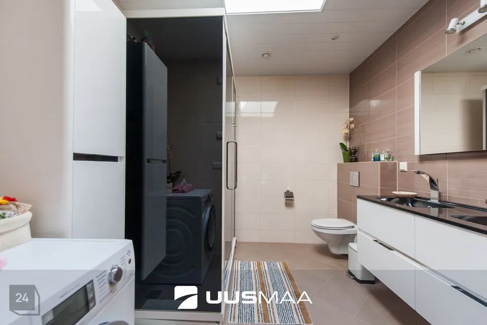 Vesipõrandakütte gaasikatla baasil, vesi-õhk soojuspump, olemas ka sundventilatsioon. Kõrged laed.