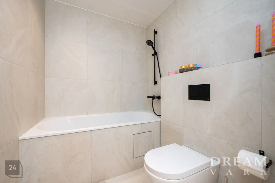 Köögimööbel, esiku garderoobikapid, TV-kapp ja vannitoa sisseehitatud kapid on valminud eritellimusena (Embassy of Design).