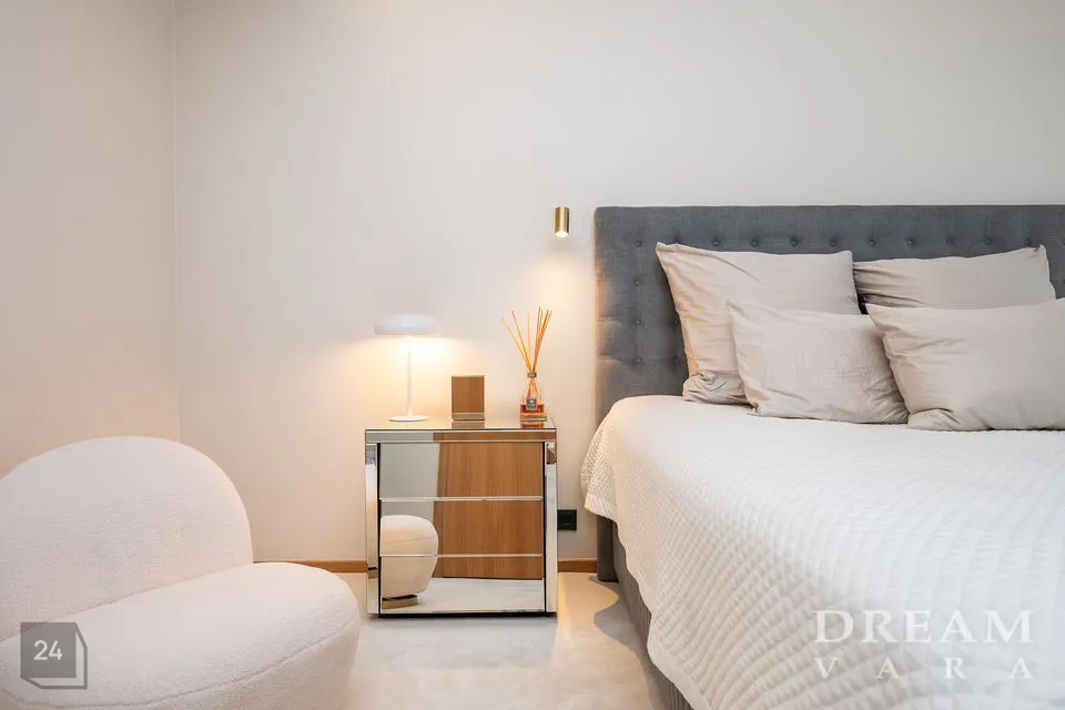 Magamistoas on 200 x 200 mugav Kamjo kontinentaalvoodi ja peegelpindadega öökapid. Põrandal vaipkate. Vajadusel võimalik lisada garderoobikapp.