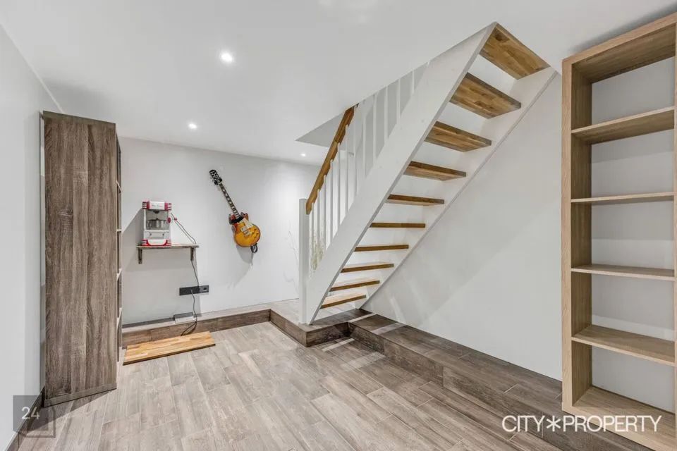 Ridaelamuboks on läbimõeldud planeeringuga, kus iga ruum on funktsionaalne ja praktiline. Siseviimistluses on kasutatud seintel heledaid värvitoone. Boks on äsja läbinud värskenduskuuri. Köögi, esiku ja keldrikorruse põrand on valatud. Köögi ja esiku põrandat katab LVT, eluruumides laminaat ja sanitaarruumides keraamiline plaat.