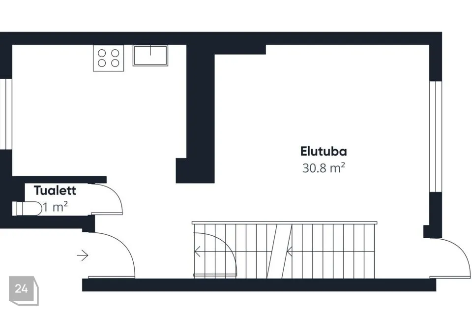 - Valgusküllane elutuba, pääsuga terrassile ja sisehoovi
