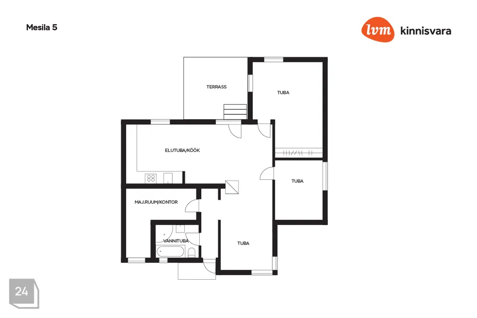 Elutoast pääseb mugavalt maja taga asuvale terrassile ja hoovi.