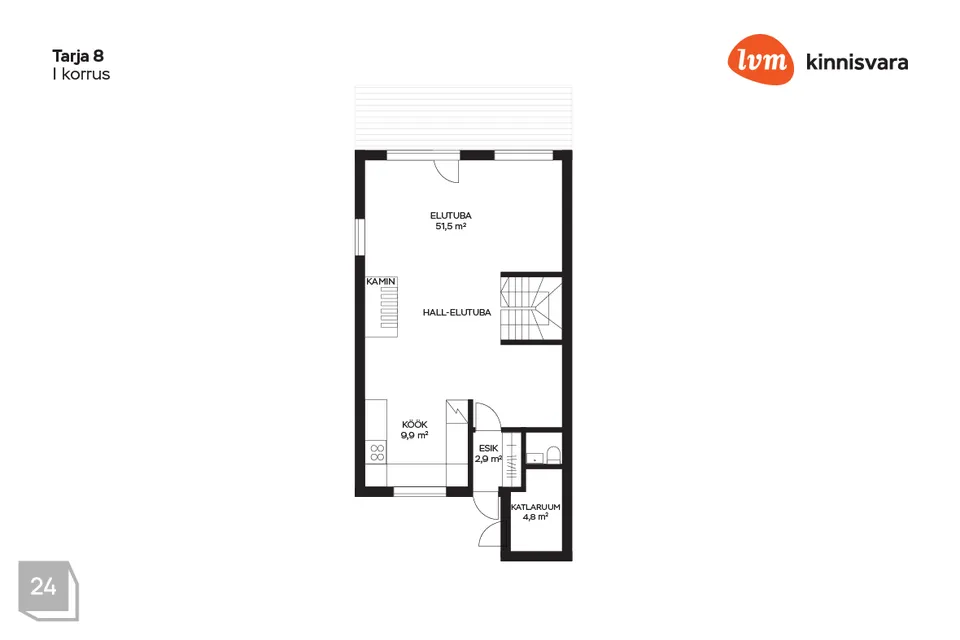 esikuosa kahe sisseehitatud garderoobiga, eraldi külaliste wc, väga avar elutuba kaminaga, funktsionaalne köögiala suunaga majaesisele hoovile, elutoast pääs kõrghaljastatud aeda ja terrassile.