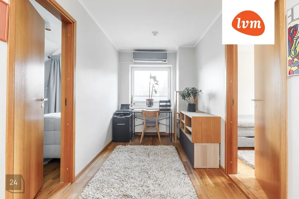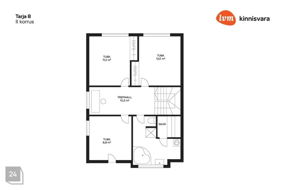 ruumikas trepihall mis on kasutuses avatud kodukontorina, kolm eraldi magamistuba millest kahes korralikud mahukad sisseehitatud gardroobid, väga suur vannituba ja saun, kus wc on eraldatud vaheseinaga, vannitoas vann, dush ja saun kõik olemas ja ruumi jääb ülegi.