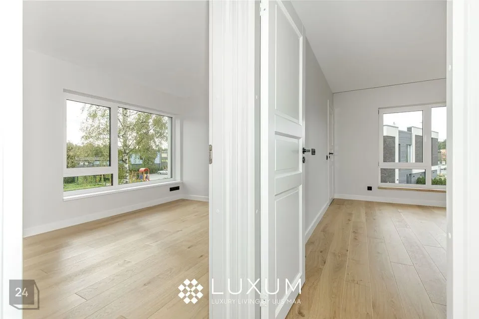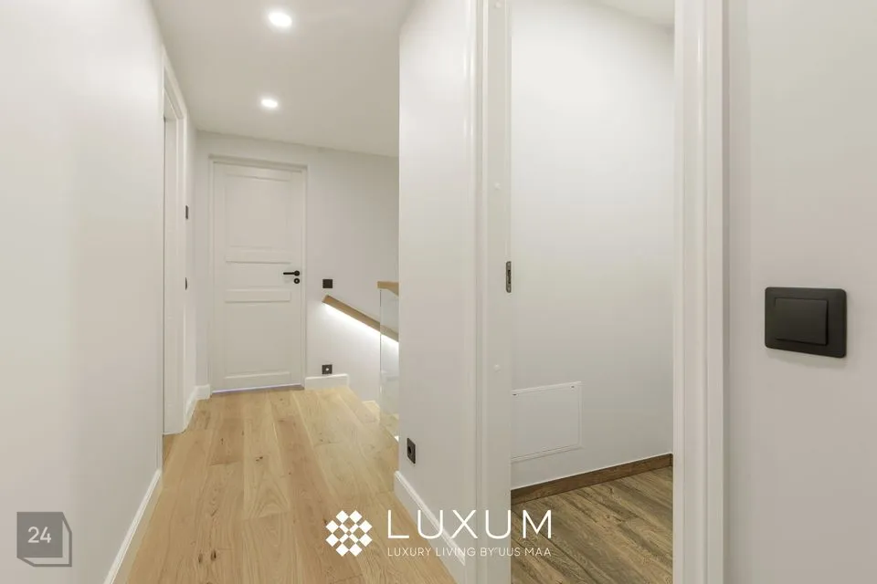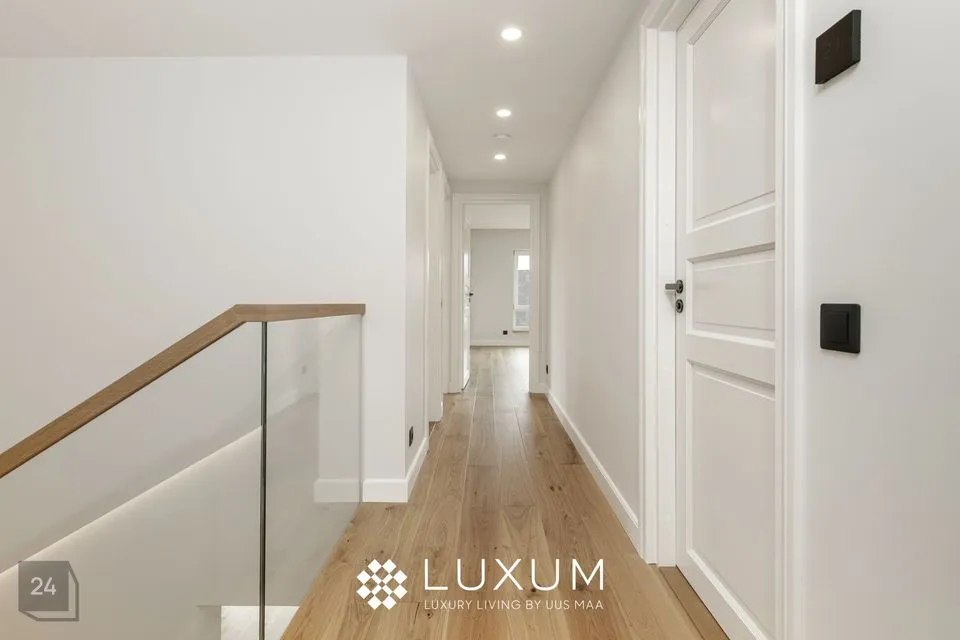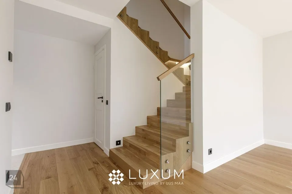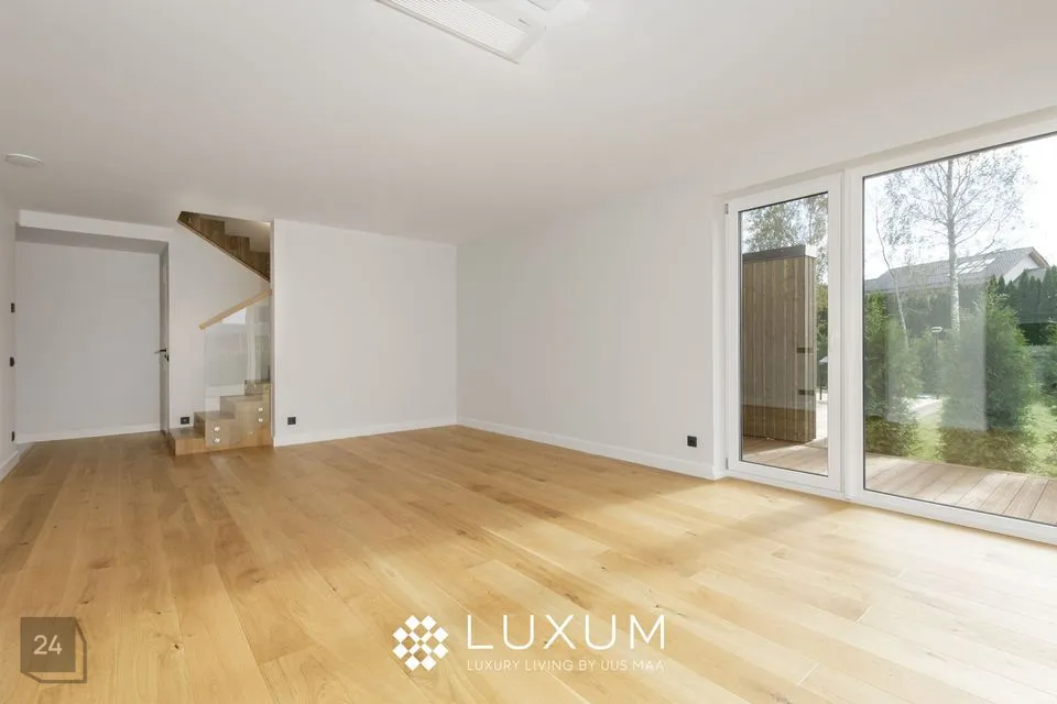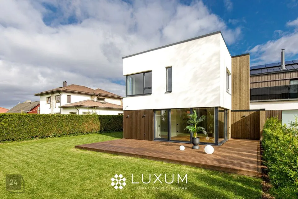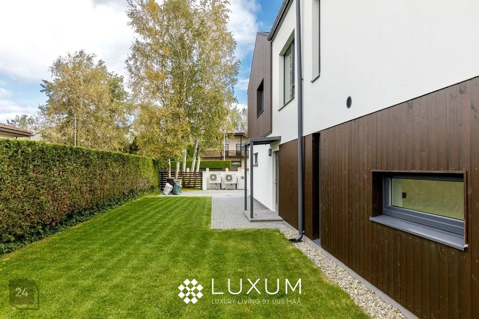 2025. aastal valminud kodu on valmis sissekolimiseks: 3 magamistuba (kahel walk-in garderoob), saun, ca 50 m² päikeseline terrass, garaaž EV-valmidusega ning katusel 4,6 kW päikesepaneelid. Krunt on haljastatud, privaatsuse tagab majaosade vaheline sein ja elupuuhekk.