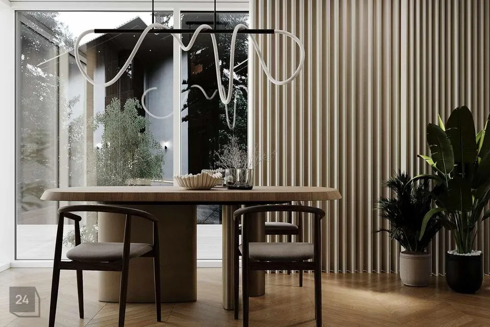 Sisekujunduse lähteülesandeks on olnud rahu ja hubasus: naturaalne 1-lipiline tammeparkett loob sooja põhitooni, seinapinnad hoiavad ruumi helgena. Trepp on viimistletud 20 mm tamme liistparketiga, mis jätkab eluruumide materjalikeelt. Vannitubades on kasutatud eritellimusmööblit ja tippklassi sanitaartehnikat, mille puhtad jooned ja kvaliteetsed pinnad toovad koju spaa-tunde. Terrassi termopuidust laudis püsib värske ja ilusana ka aastate pärast.