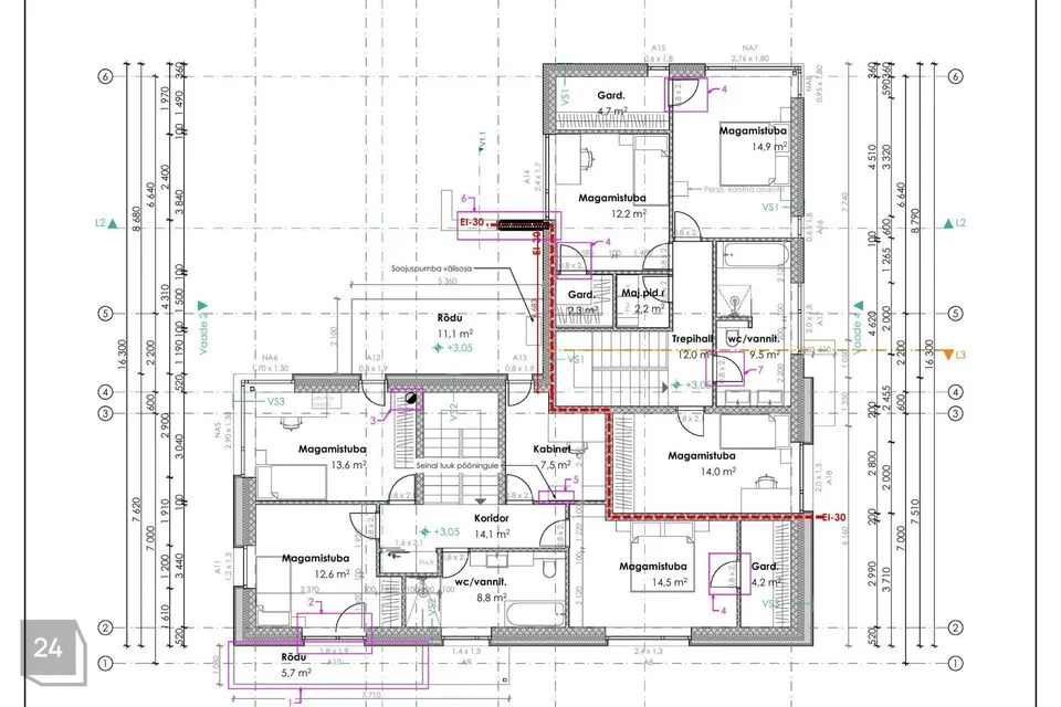 Monoliitne raudbetoonist trepp viib teisele korrusele: siin on kolm magamistuba, millest kahel on oma walk-in garderoob, praktiline majapidamisruum, trepihall ning avar perevannituba.