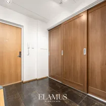 Элегантный вход с большим гардеробным шкафом и гостевым туалетом (мебель Balteco). Полы выложены плиткой – удобно и долговечно.