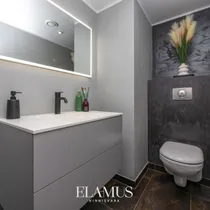 - Снова мебель Balteco в ванной комнате, все выложено плиткой с удобным подогревом пола