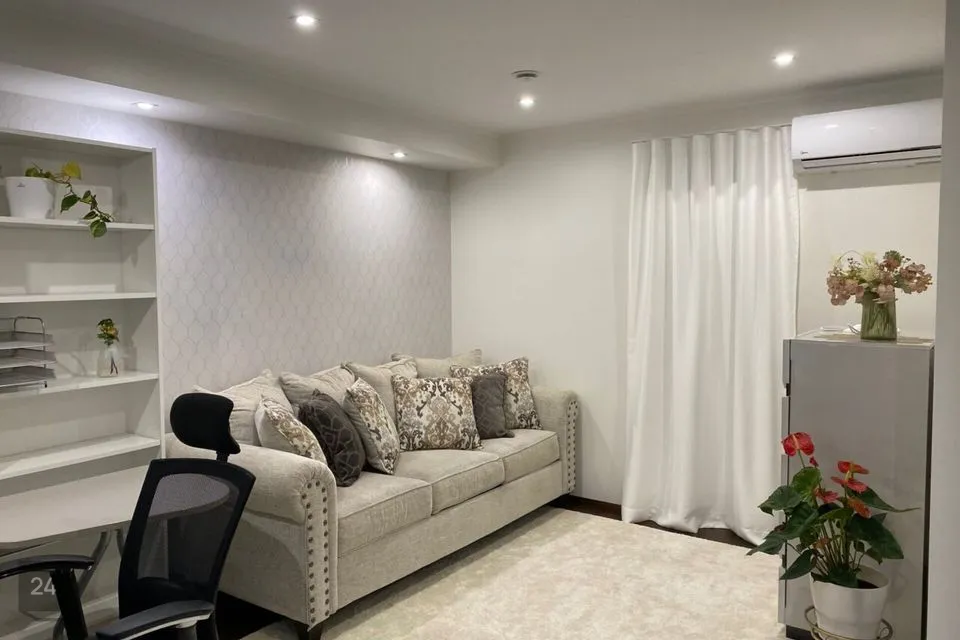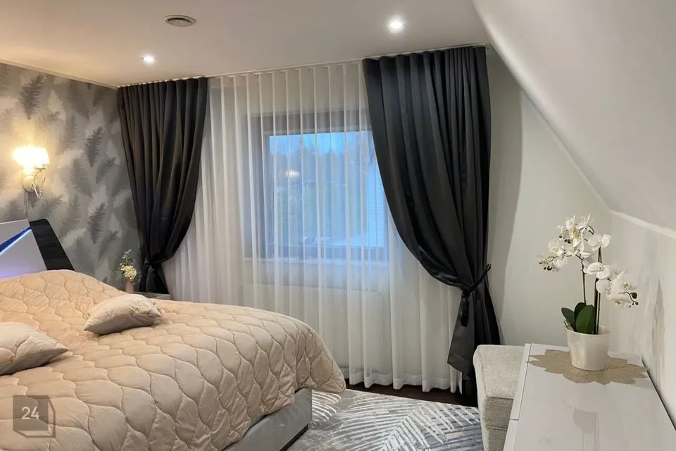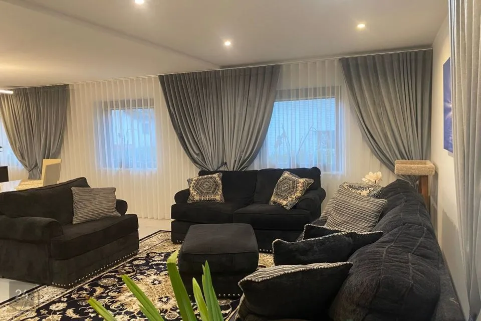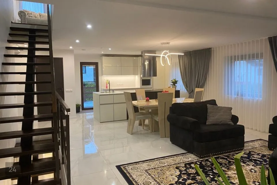Majaosa müüakse koos kvaliteetse mööbliga. Söögitoa, elutoa ja magamistubade mööbel on pärit Ameerikast. Köögitehnika hulgas on valdavalt Bosch, induktsioonpliit on Miele ja külmkapp Electrolux. Enamik sanitaartehnikast on Grohe ning Villeroy & Boch toodang. Vaibad on ostetud ja kardinad on lastud õmmelda Kangas ja Nööp salongis (sept-okt 2025).
