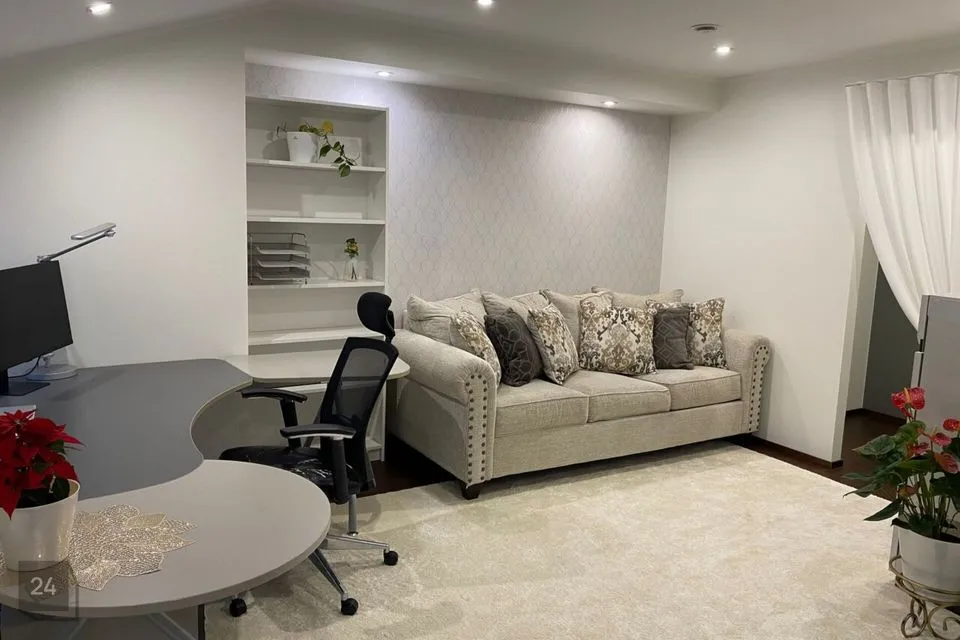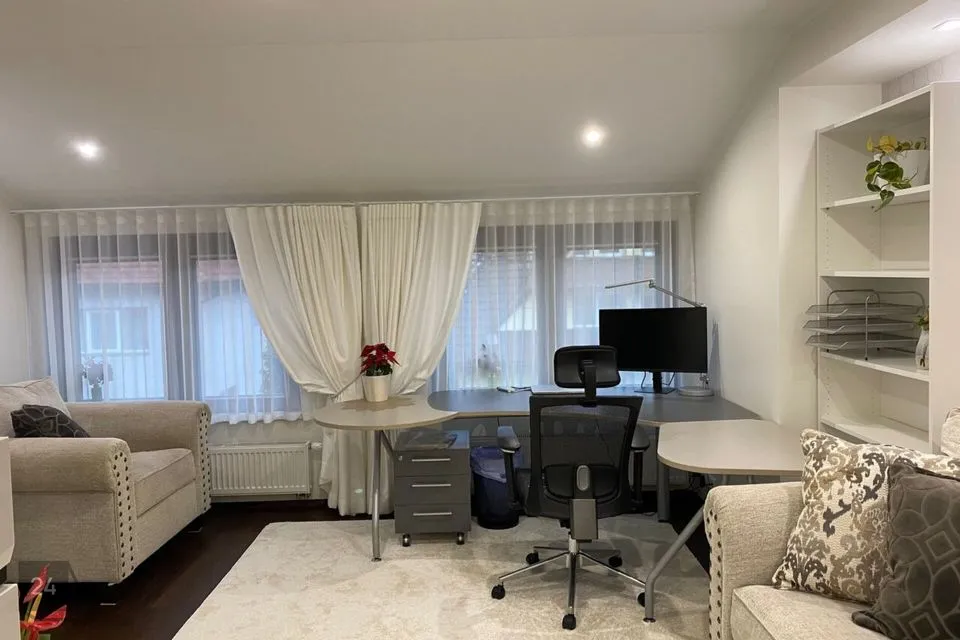 Kabinet, eraldi WC, avatud köök ja elutuba. Kabinetist ja köögist pääseb 19 m² terrassile, kus saab luua mõnusa puhkeala ja nautida täielikku vaikust.