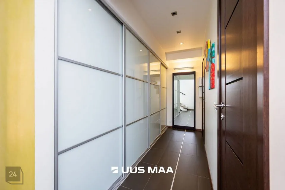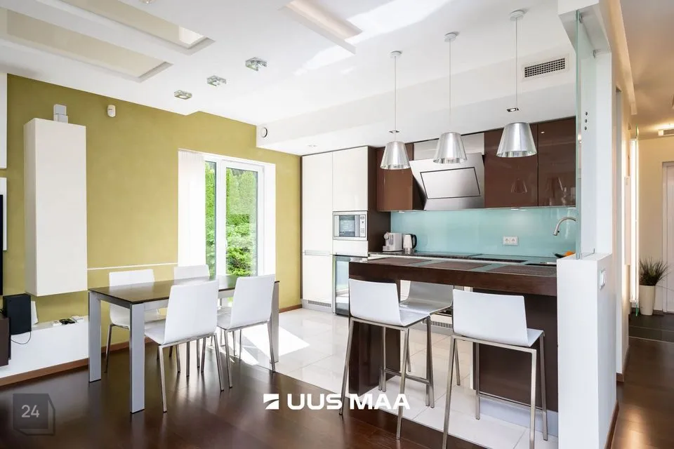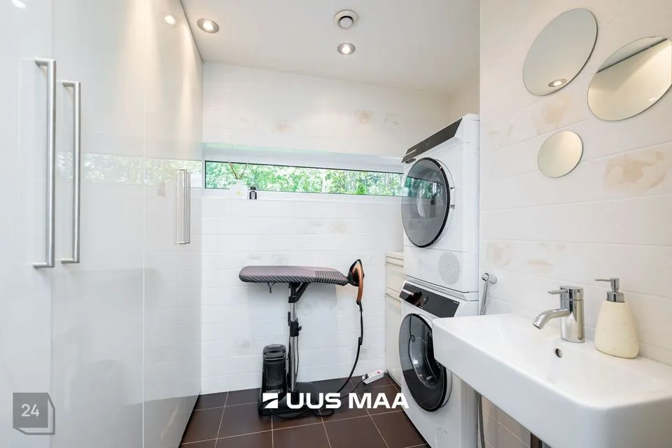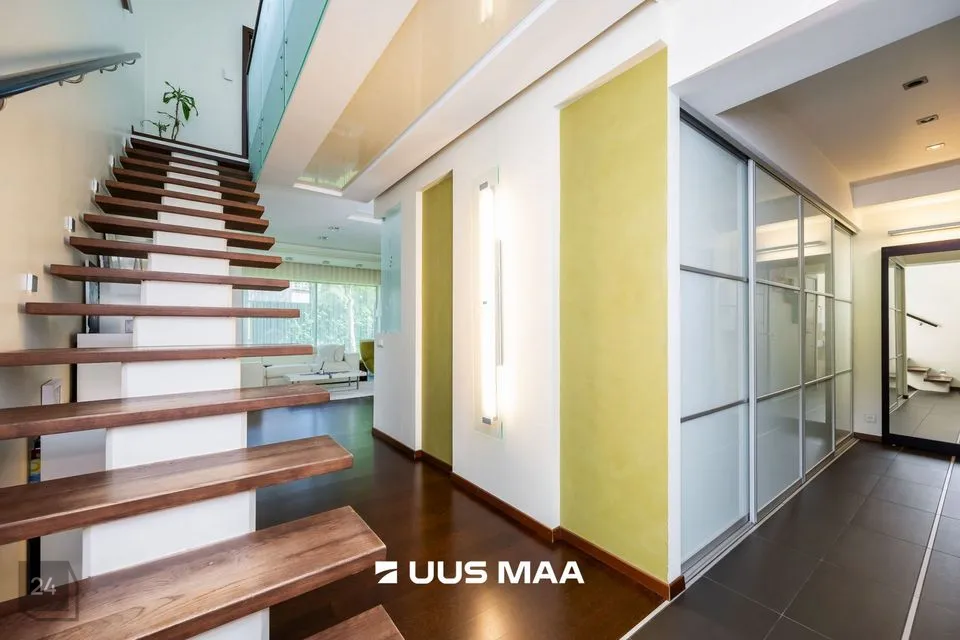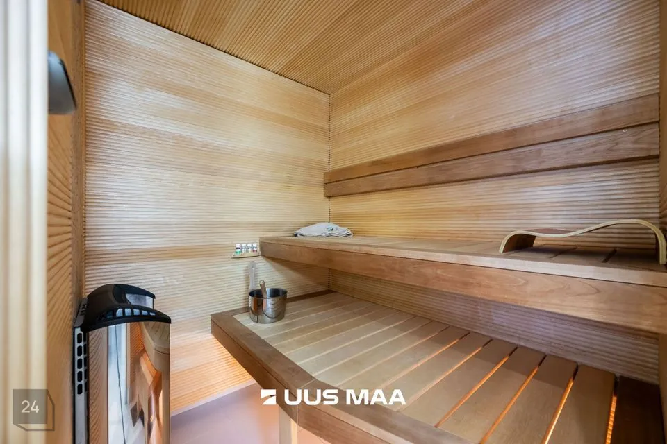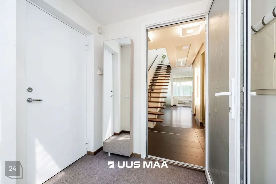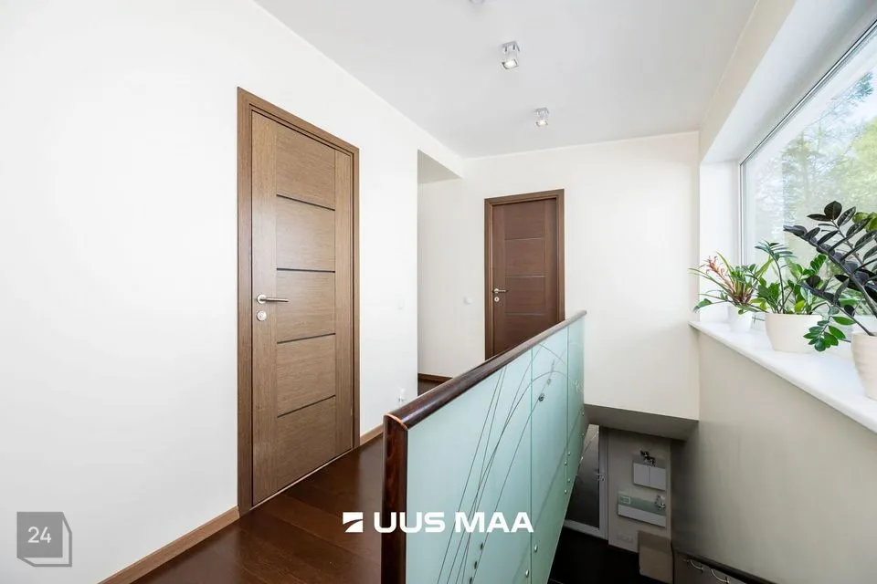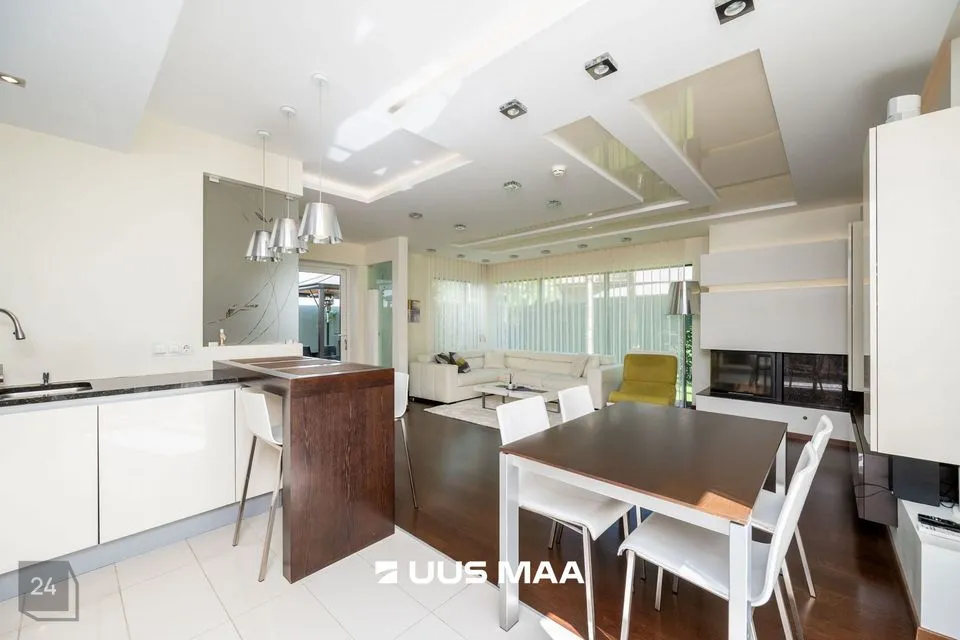 Majaosa siseviimistlus on maitsekas ja kvaliteetne. Põrandaid katab naturaalne tammeparkett. Müügihind sisaldab kogu integreeritud tehnikat ning majaosas olevat mööblit.