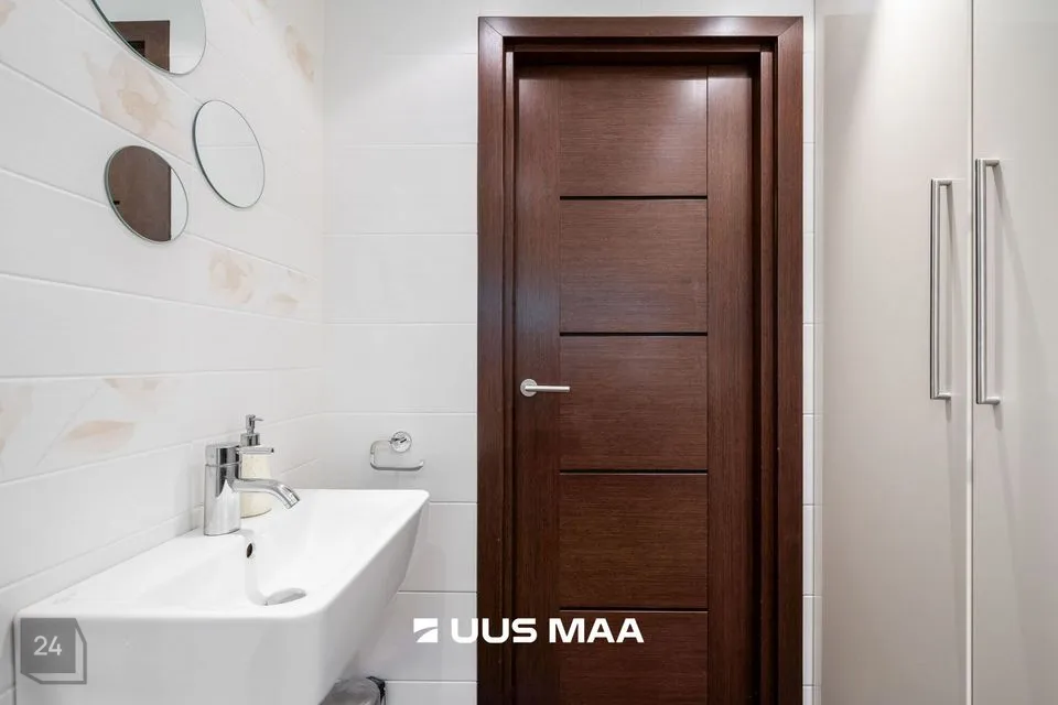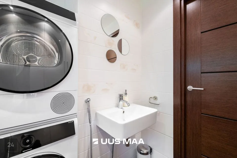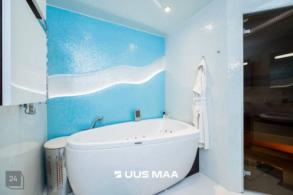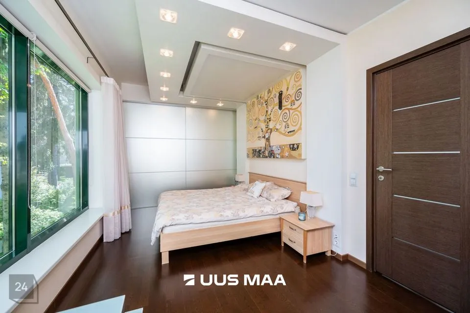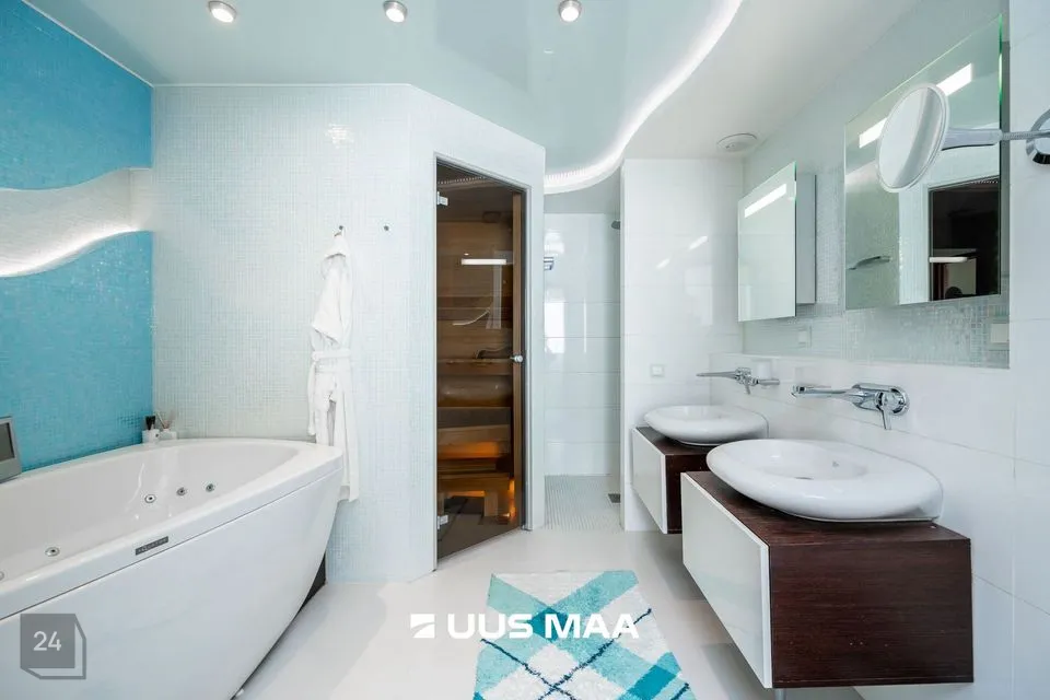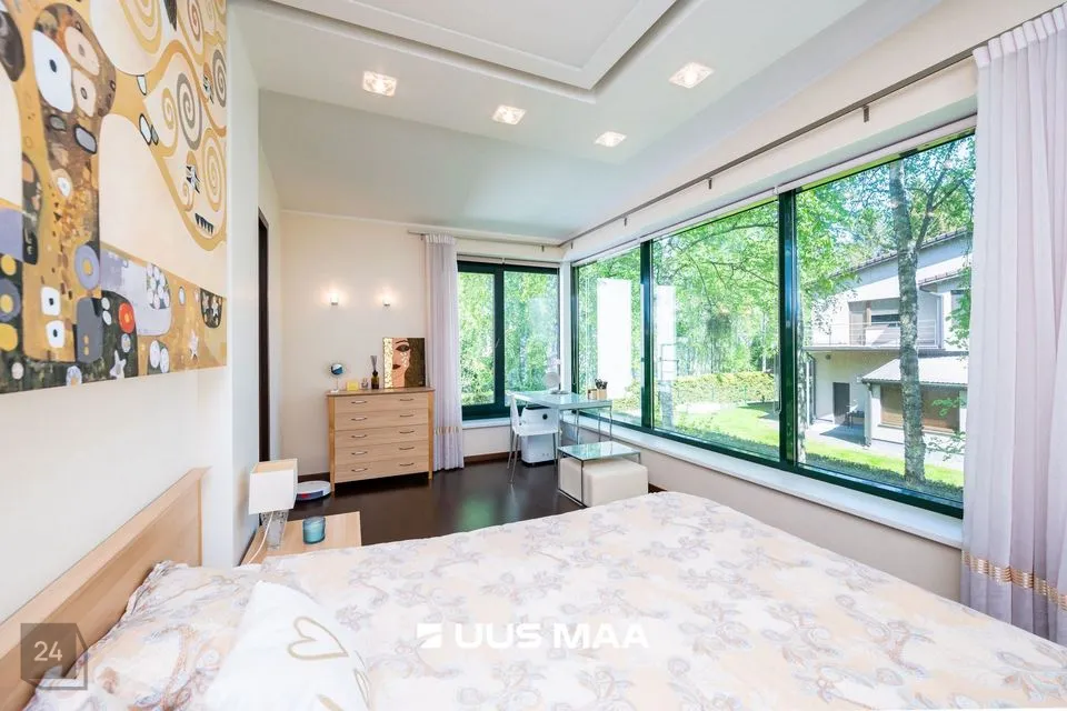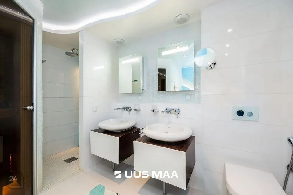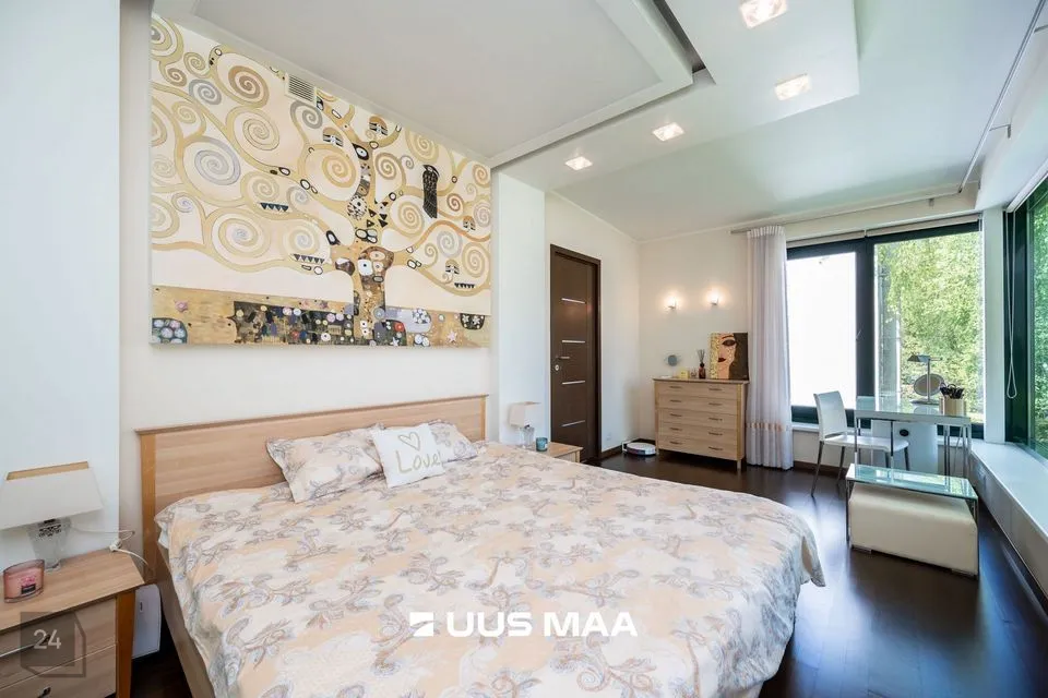 Majaosa siseviimistlus on maitsekas ja kvaliteetne. Põrandaid katab naturaalne tammeparkett. Müügihind sisaldab kogu integreeritud tehnikat ning majaosas olevat mööblit.