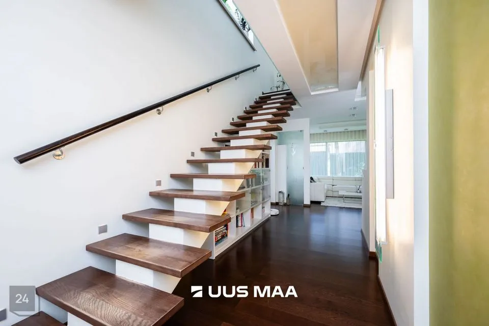 Väga hea ja avar planeering - esimesel korrusel on avatud köögiga elutuba, garderoob, tuulekoda, majapidamisruum, WC/dušširuum ning garaaž. Esimeselt korruselt on ka pääs hoovi ning terrassile, kus on mõnus grillida ja nautida rohelist vaadet hoolitsetud aiast. Teisel korrusel on 3 magamistuba, vannituba koos vanni, dušši ja saunaga.