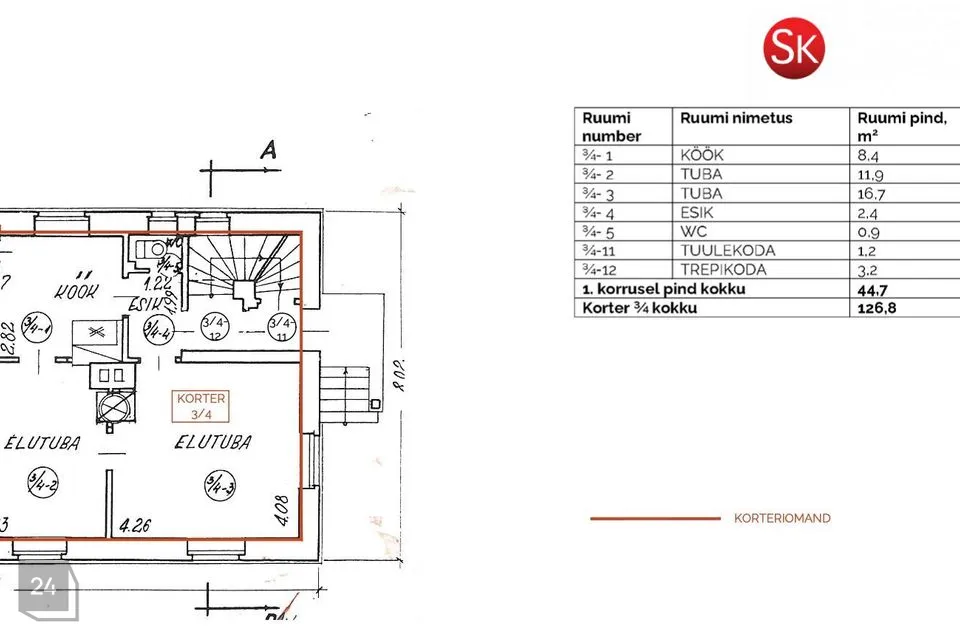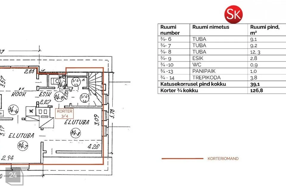 PS: Elutoas olemas toimiv korsten ning seega on võimalus paigaldada kamin.