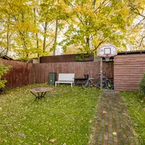 Hooviosa on kogu ulatuses piiritletud aiaga ning mugavaks kõndimiseks või lastel rattasõiduks on sillutatud ka tee. Hoovi tagaosas on kuur ning grillmaja. Hoovist leiate väga saagikaid vaarikataimi, marjapõõsaid, viljapuid, lisaks ka ilutaimi.