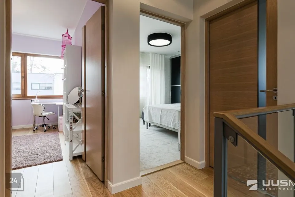 Ülemine korrus on planeeritud privaatsust ja mugavust silmas pidades, pakkudes vajadusel ka eraldatud tööruumi võimalusi.