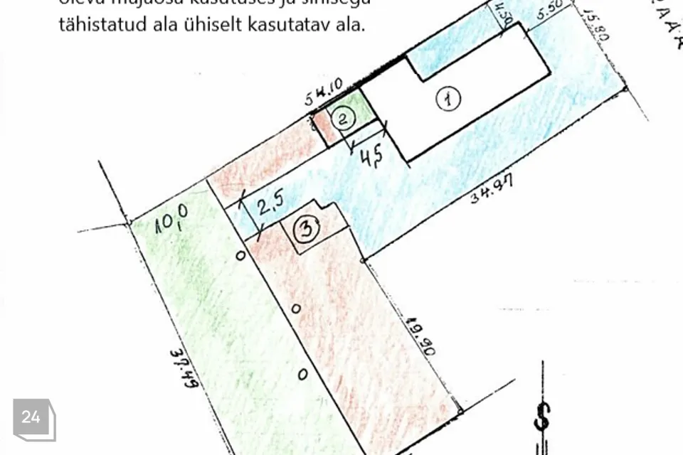 Продается часть дома с четырьмя комнатами, требующая ремонта, в районе Таммелинна, общей жилой площадью 64,1 м². Дополнительно имеются гараж площадью 18 м² и сарай площадью 20 м². Часть дома находится в долевой собственности между двумя владельцами. На жилье и участок имеется действующий порядок использования.