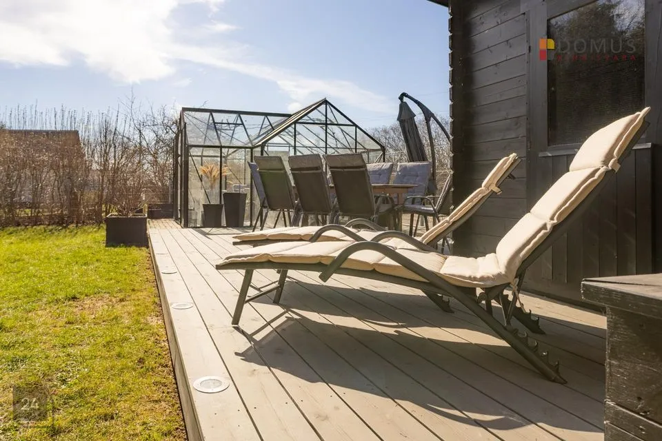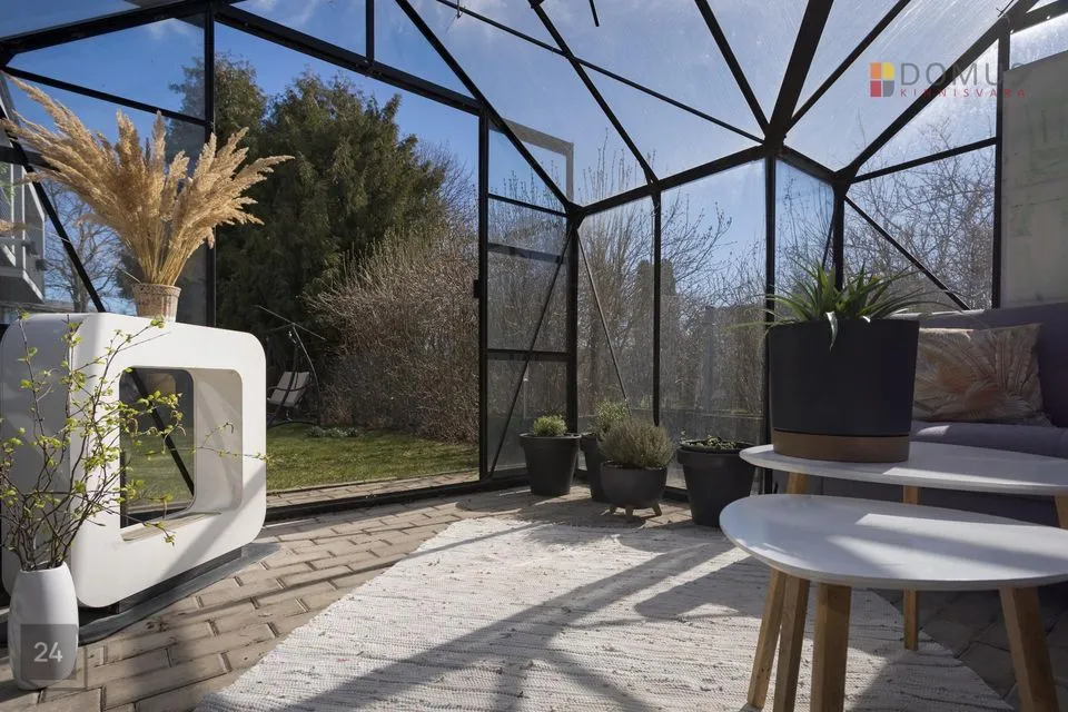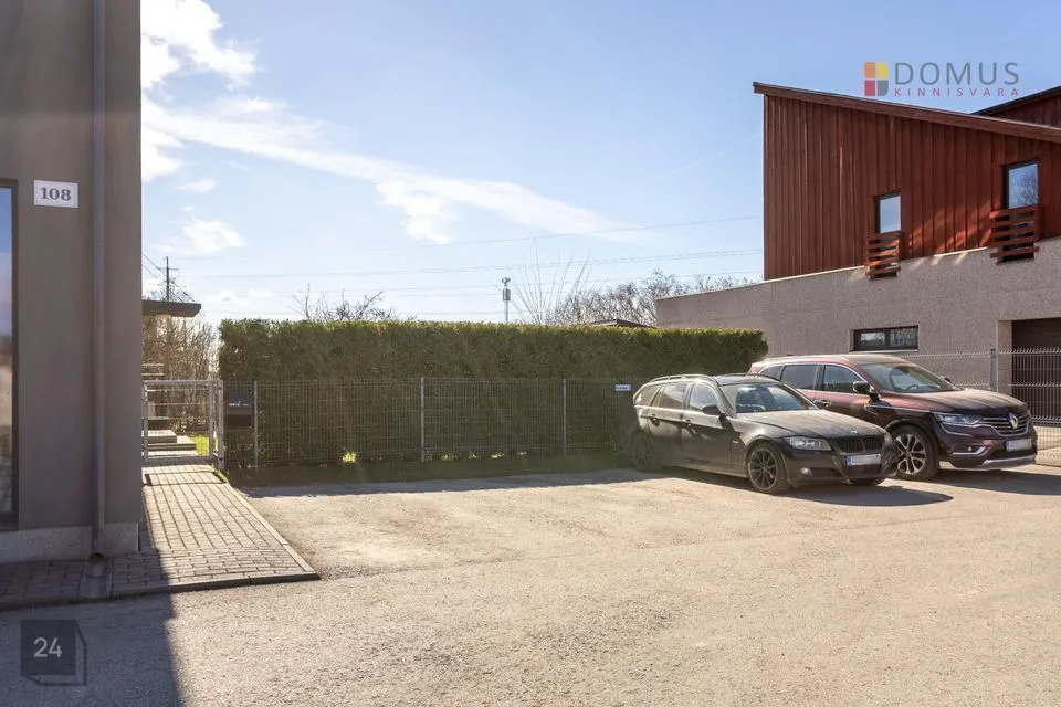 Korteri juurde kuulub 2 parkimiskohta ning avar aiaala suurusega ca 200 m². Aiaalale lisab ilmet 13 m² klaasmaja. Klaasmaja on väga hea kasutada juba siis, kui kevadel on ilmad küll jahedad, aga päike juba soojendab ning see majake võib päästa nii mõnegi grillipeo, kui ilm otsustab alt vedada ja tuleb kõrval olevalt terrassilt (27 m²) pidu katuse alla kolida. Majakeses on kivipõrand. Lisaks on aias vajalike tööriistade jaoks 7 m² kuur.