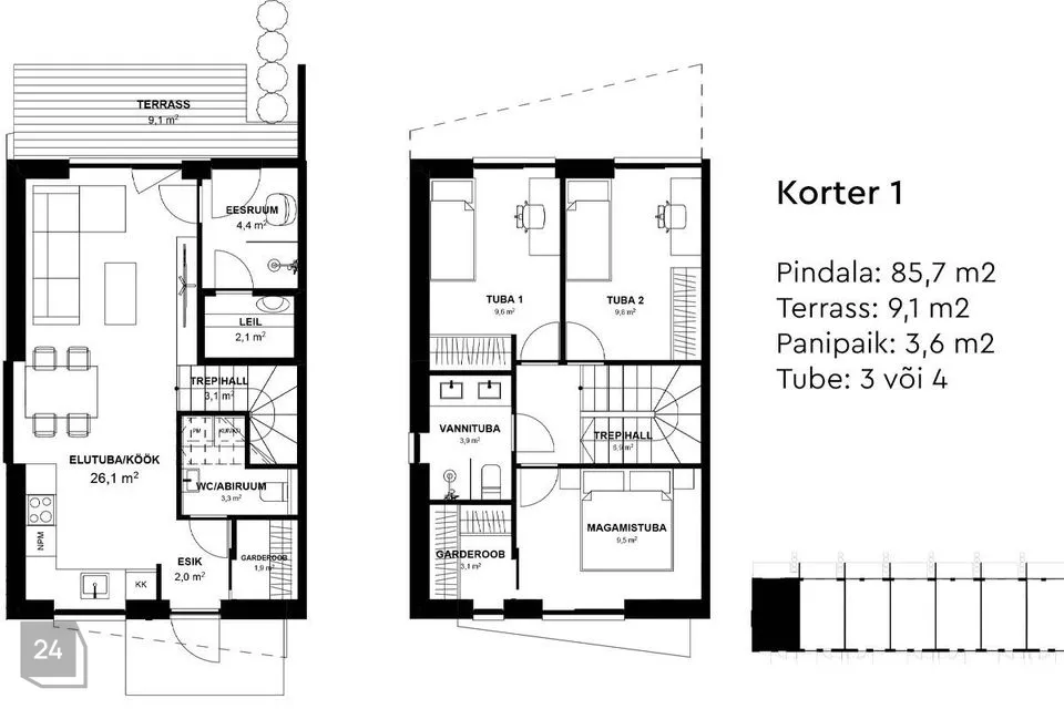 Pildigaleriis on leitav kõnealuse ridaelamuboksi toalisus ning planeering.
