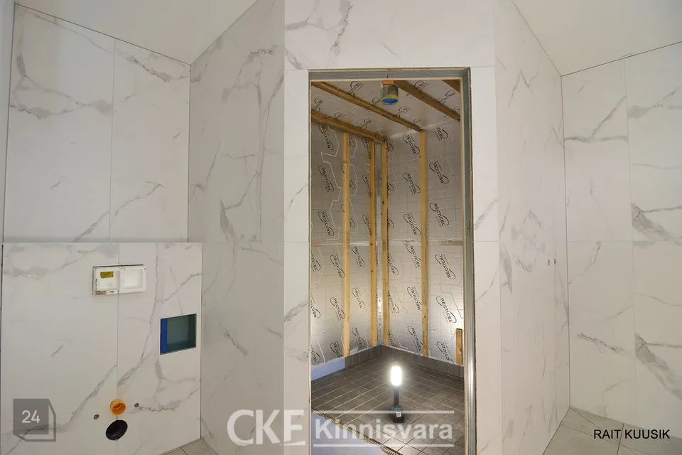 A energiaklassiga betoonmaja. Väliseinad 220 mm raudbetoon + 150 mm PIR soojustusplaat. Bokside vaheseinad 200 mm raudbetoon.